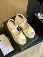 CC CLASSIC WEDGE SANDALS IN WHITE LAMBSKIN