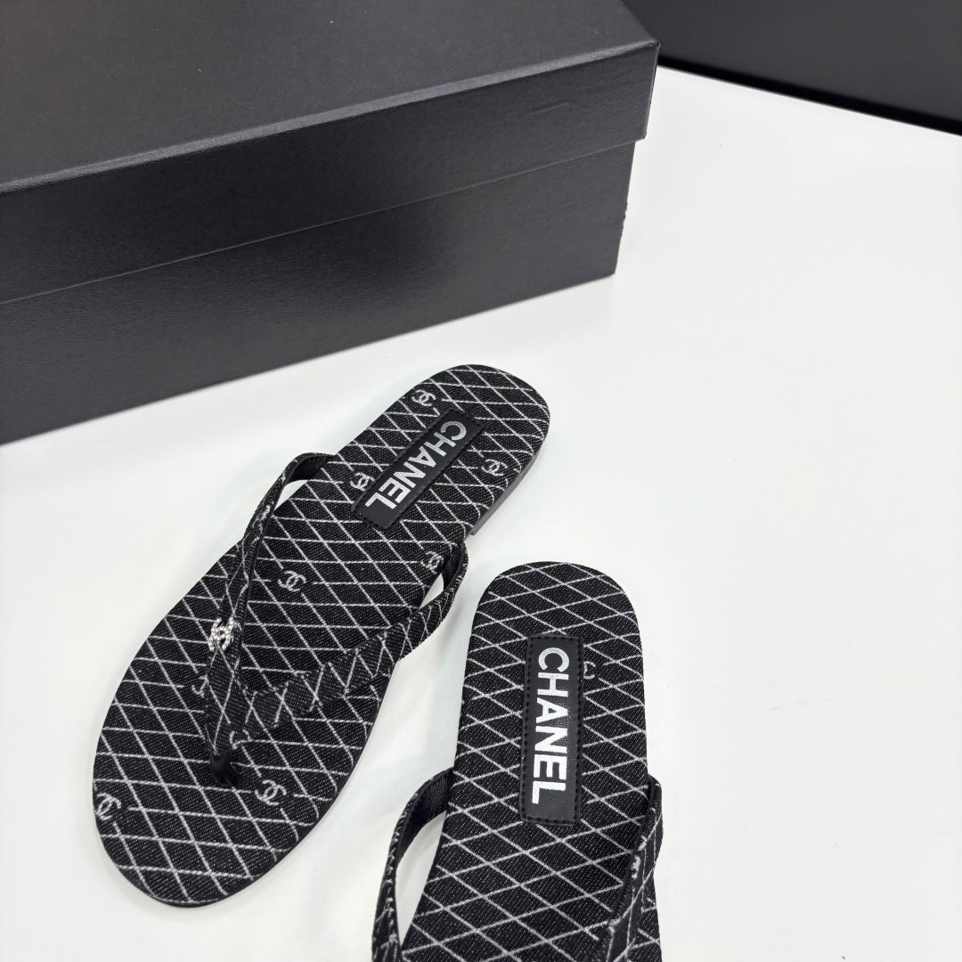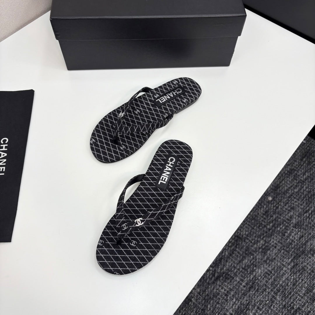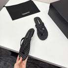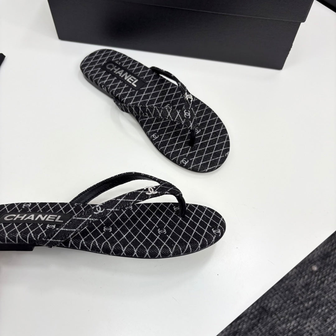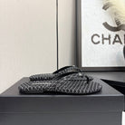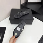 CC Crystal Logo Thong Sandal Black Fabric And Sheepskin 352485