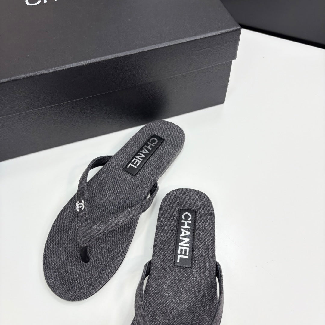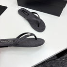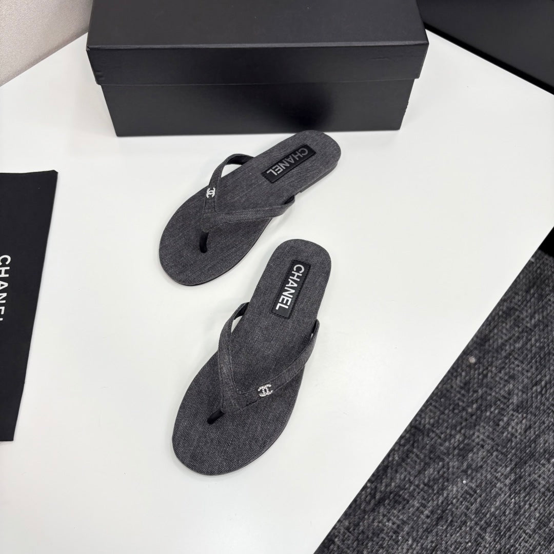 CC Crystal Logo Thong Sandal Grey Fabric And Sheepskin 352482