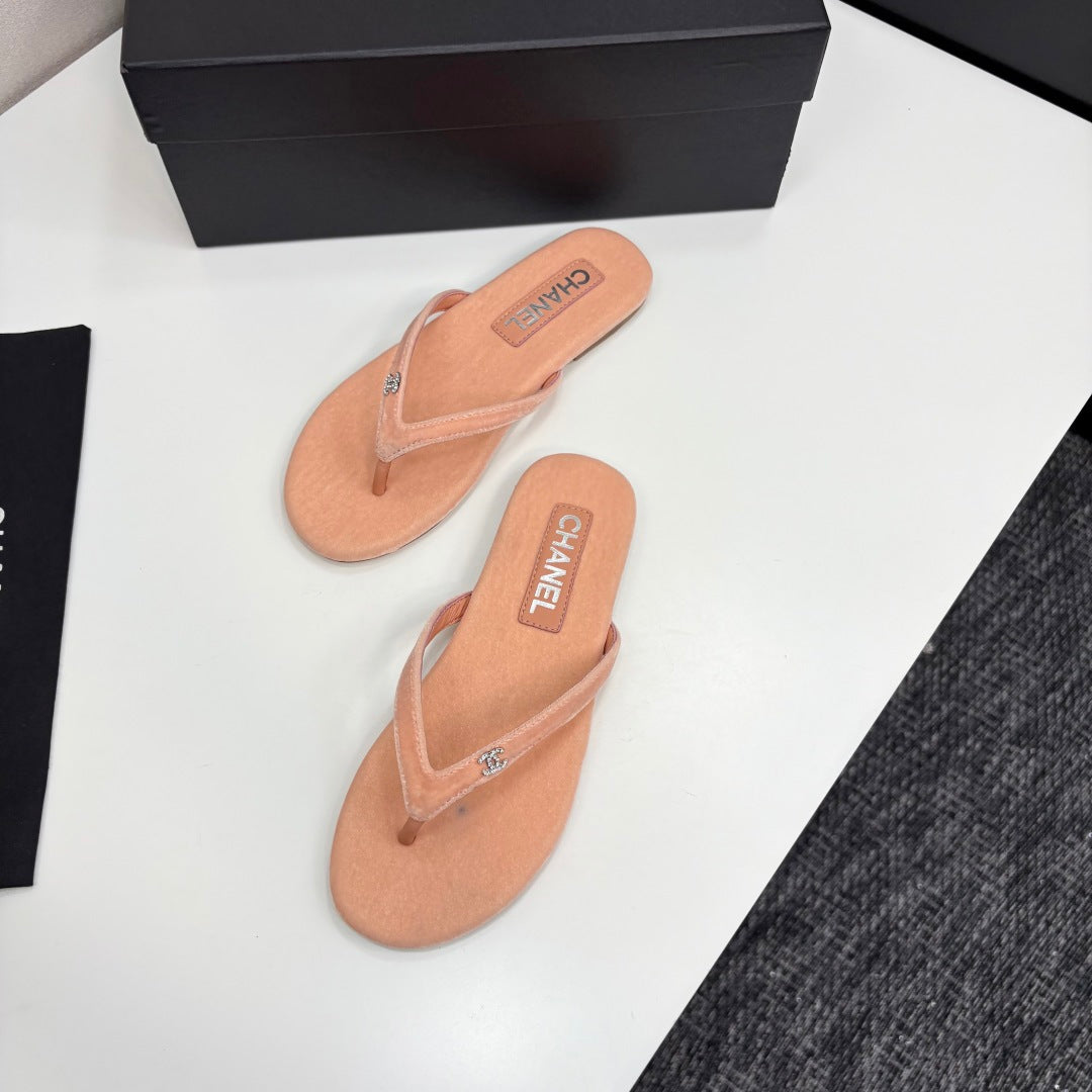 CC Crystal Logo Thong Sandal Salmon Velvet 352481