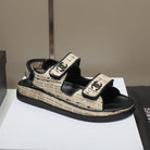 CC Dad Sandal Beige Black Woven Black Calfskin