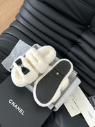 CC DAD SANDAL MULE IN WHITE FLEECE WITH GOLD HARDWARE
