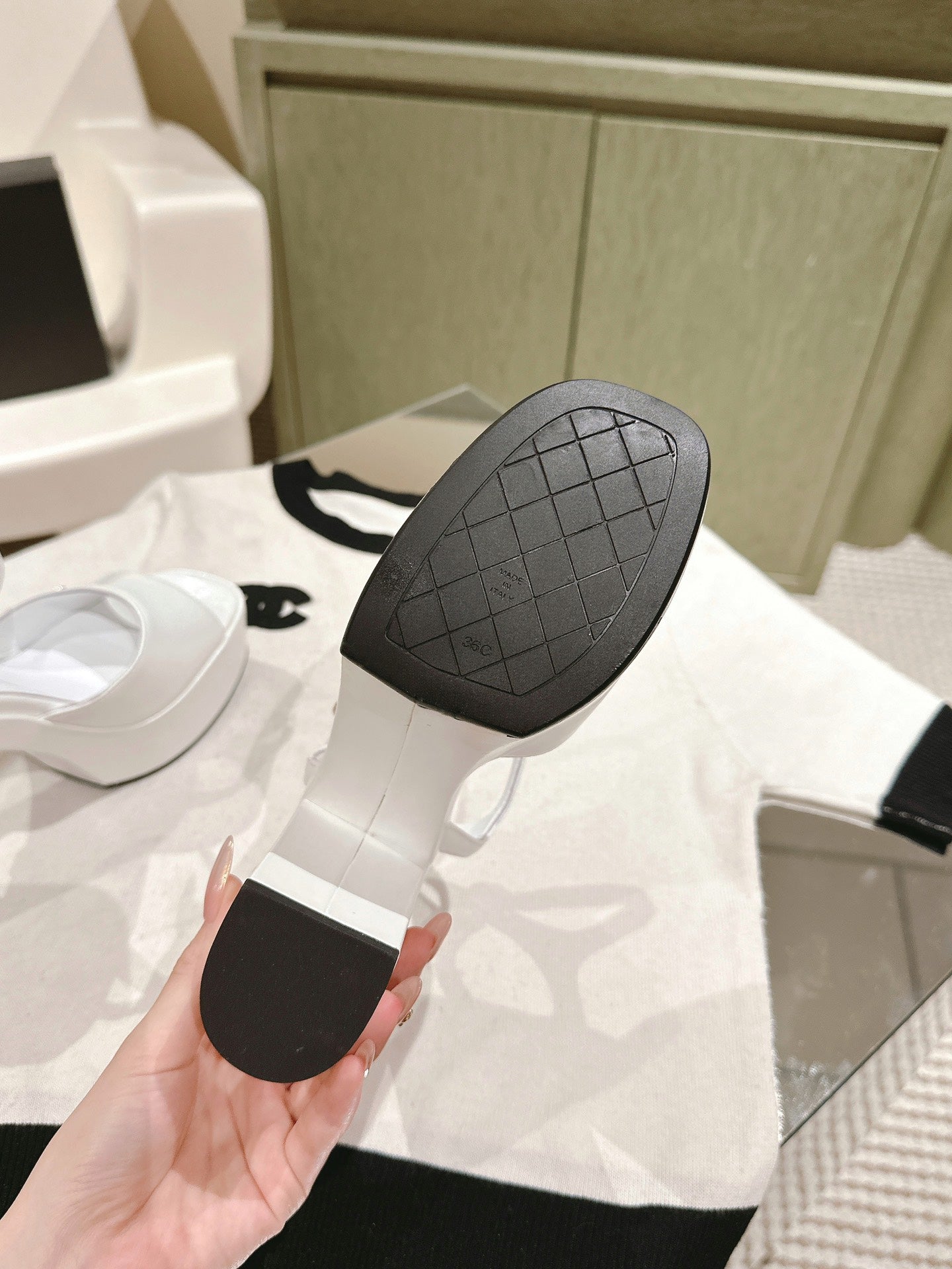 CC HIGH SANDAL WHITE CALFSKIN