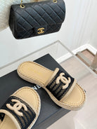 CC Mesh Hollow Chain Double C Thick-Soled Slippers 20mm Beige Black 265646