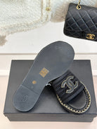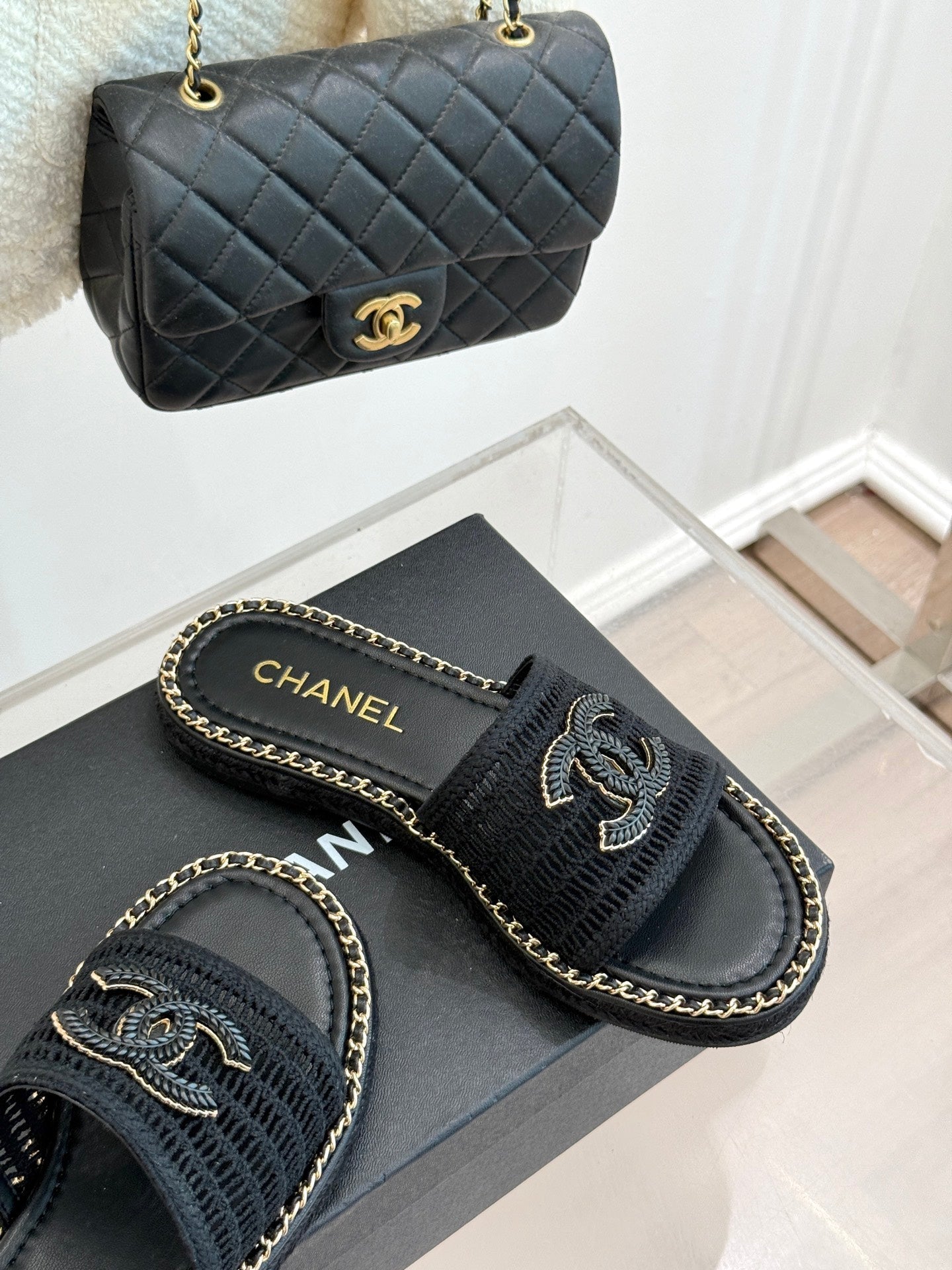 CC Mesh Hollow Chain Double C Thick-Soled Slippers 20mm Black 265647