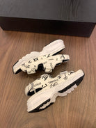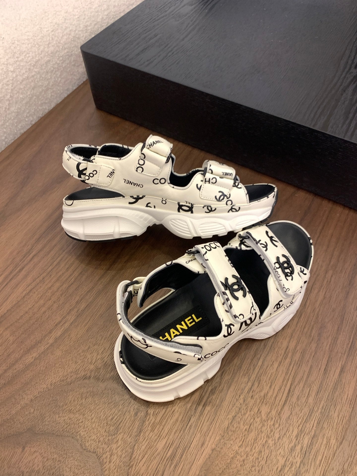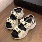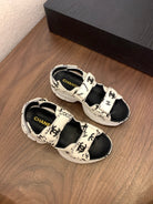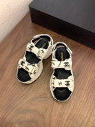 CC Toe Sandals White Mix Camellia Pattern Leather 299536