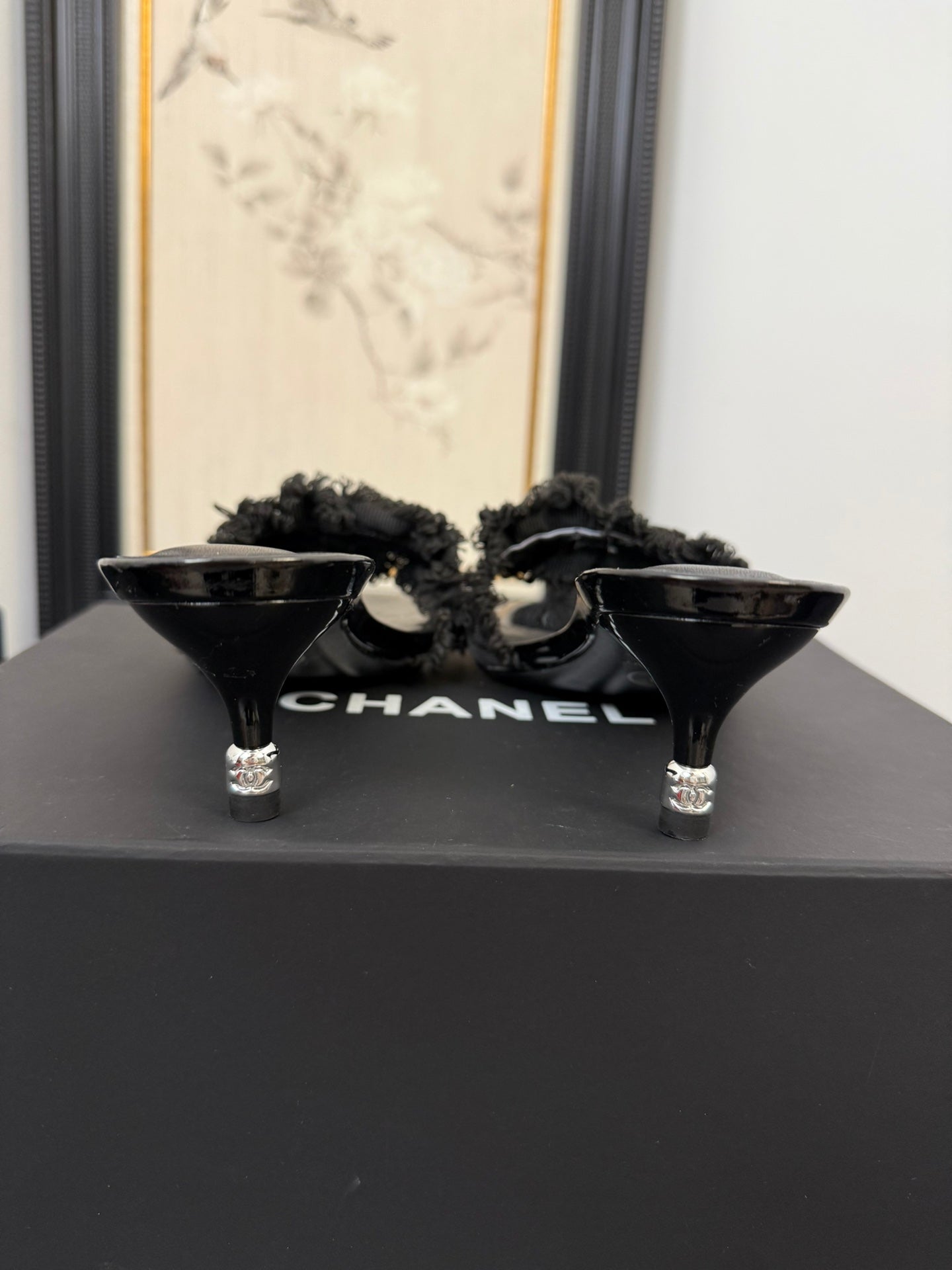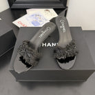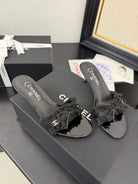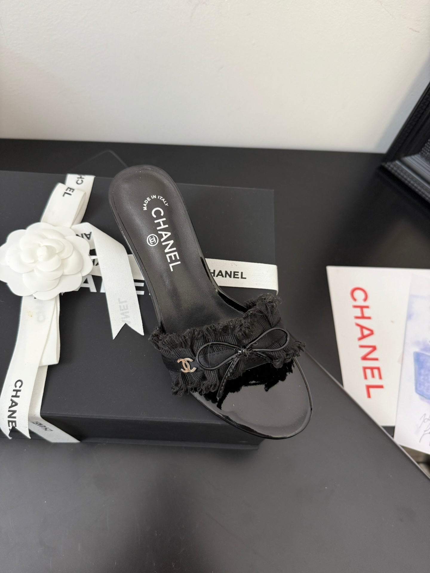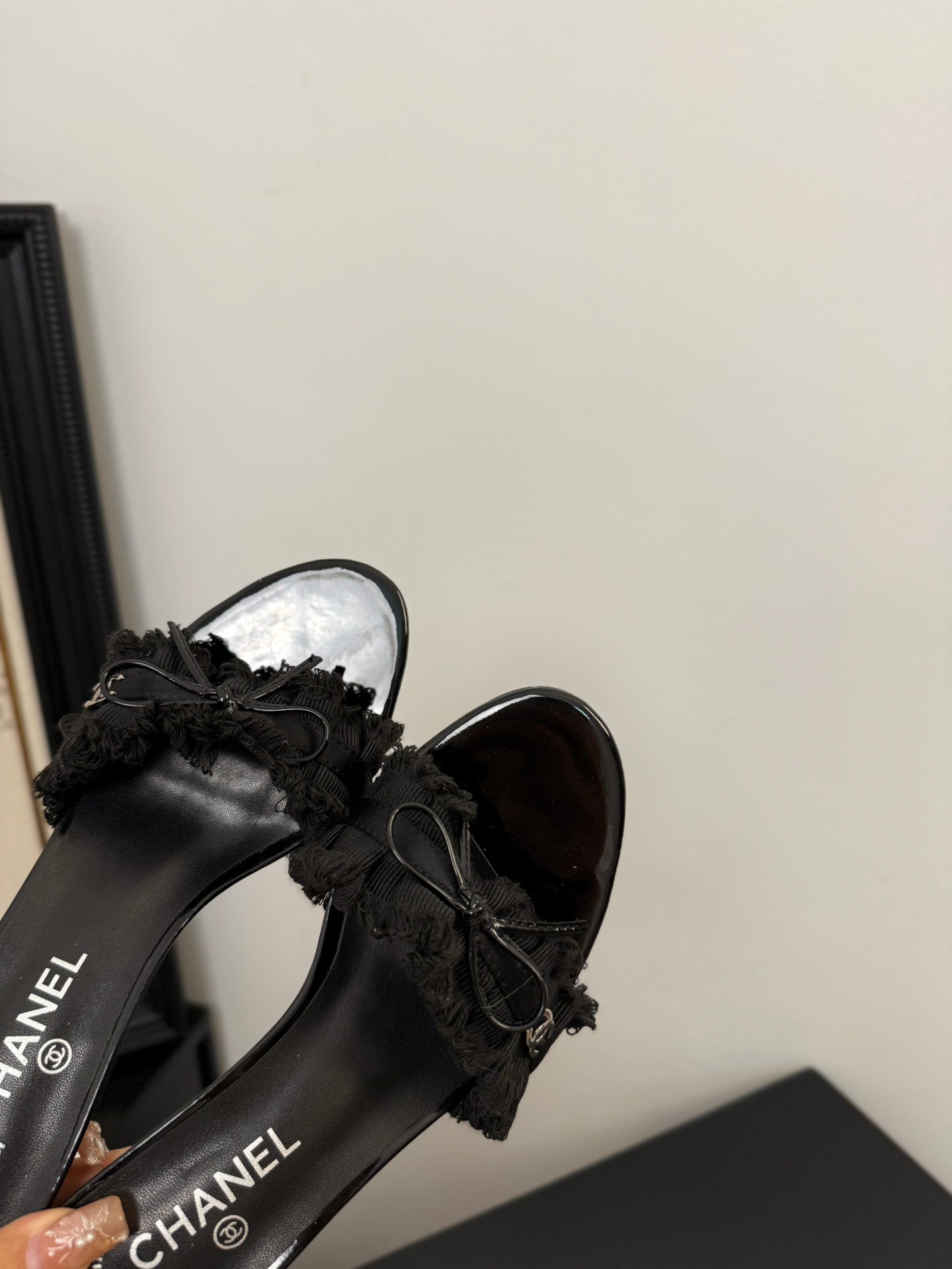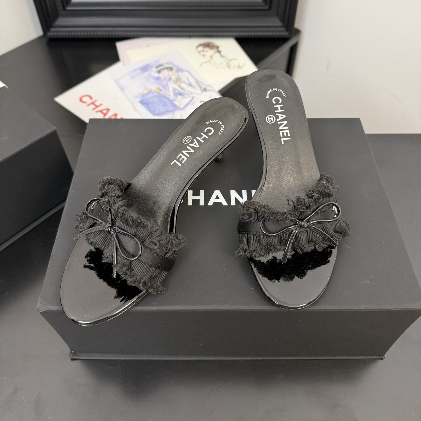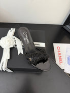 cc25 slide sandal 65mm ruffle bow heels black grosgrain canvas 233584