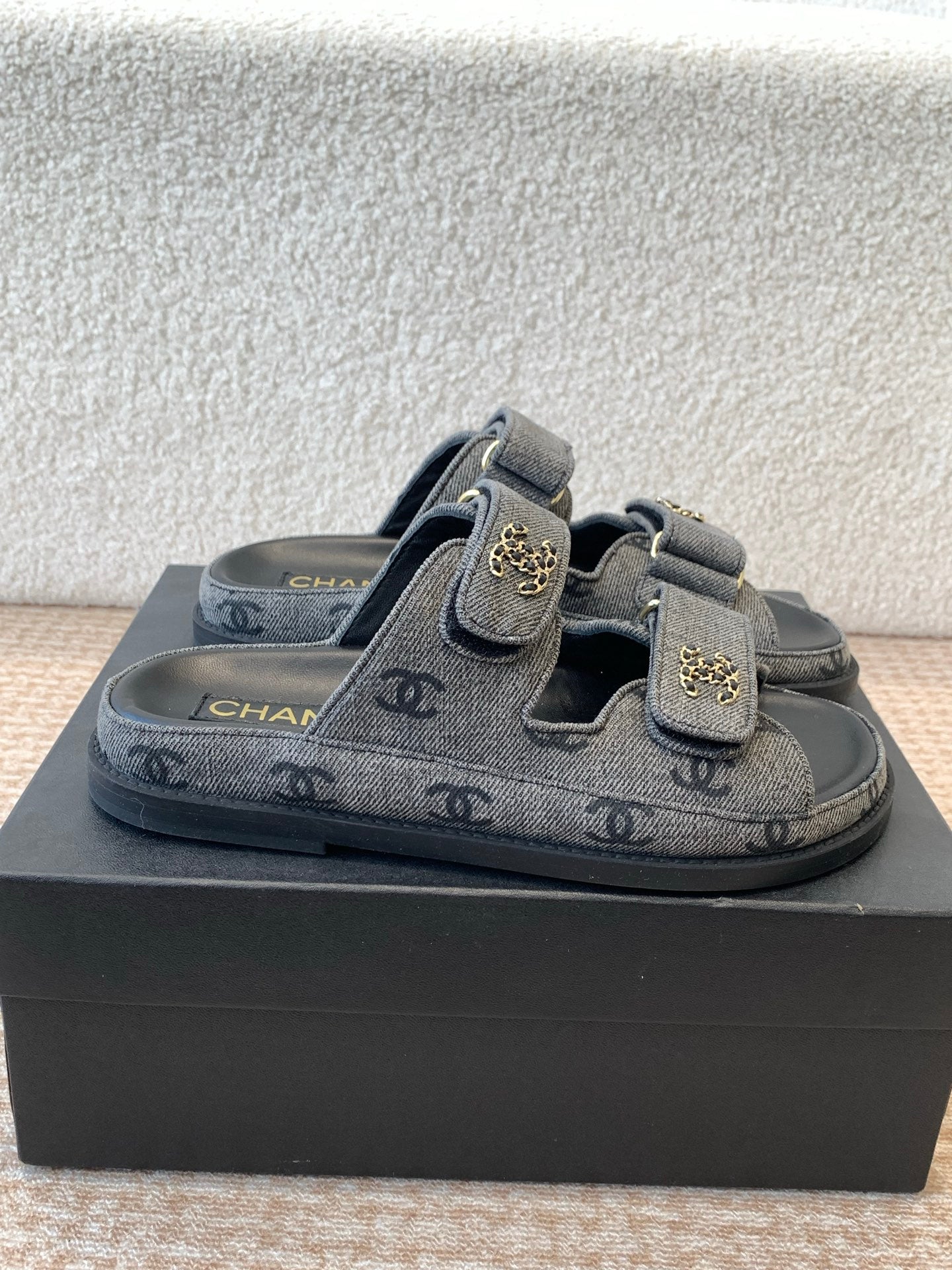 DAD SANDAL IN BLACK DENIM FABRIC MULE