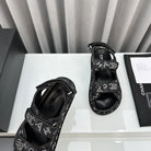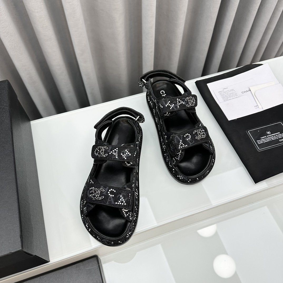 dad sandals black denim mules
