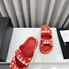 dad sandals red white mules