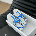 Double C Classic One-Strap Sandals White Navy Blue Lambskin