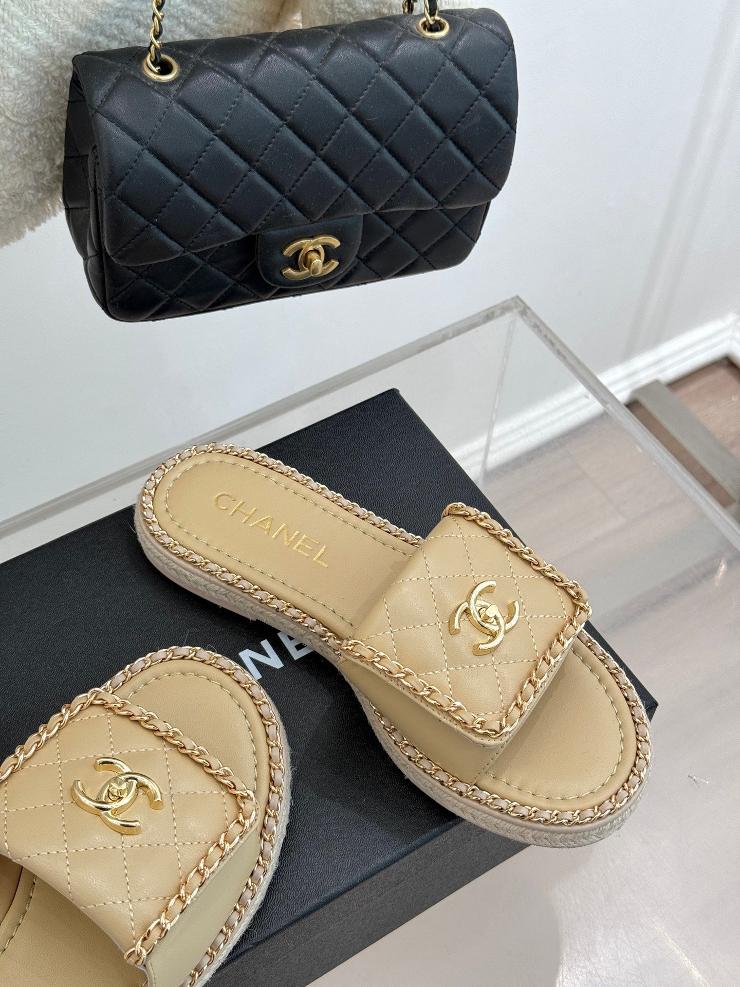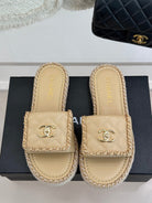 FLAT CHAIN HEART SLIPPER IN BISQUE BEIGE LAMBSKIN