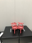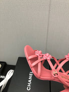 FLORAL HIGH HEEL SANDAL IN DARK PINK LAMBSKIN