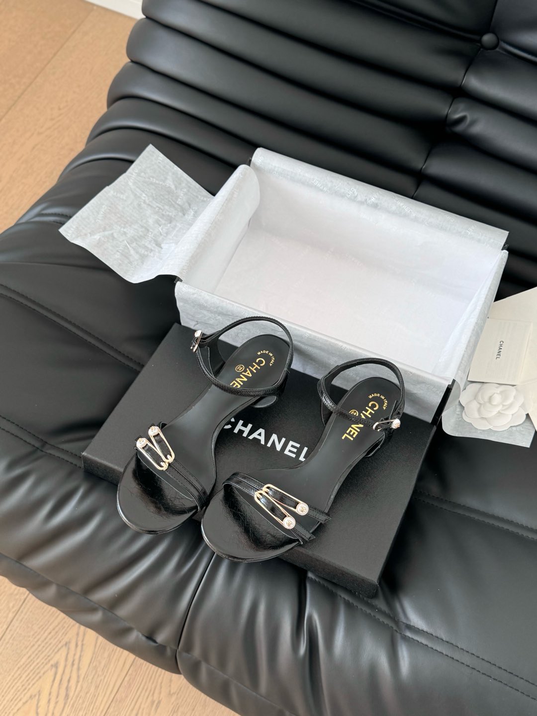 MID-HEEL 35 MM SANDAL IN BLACK SHEEPSKIN