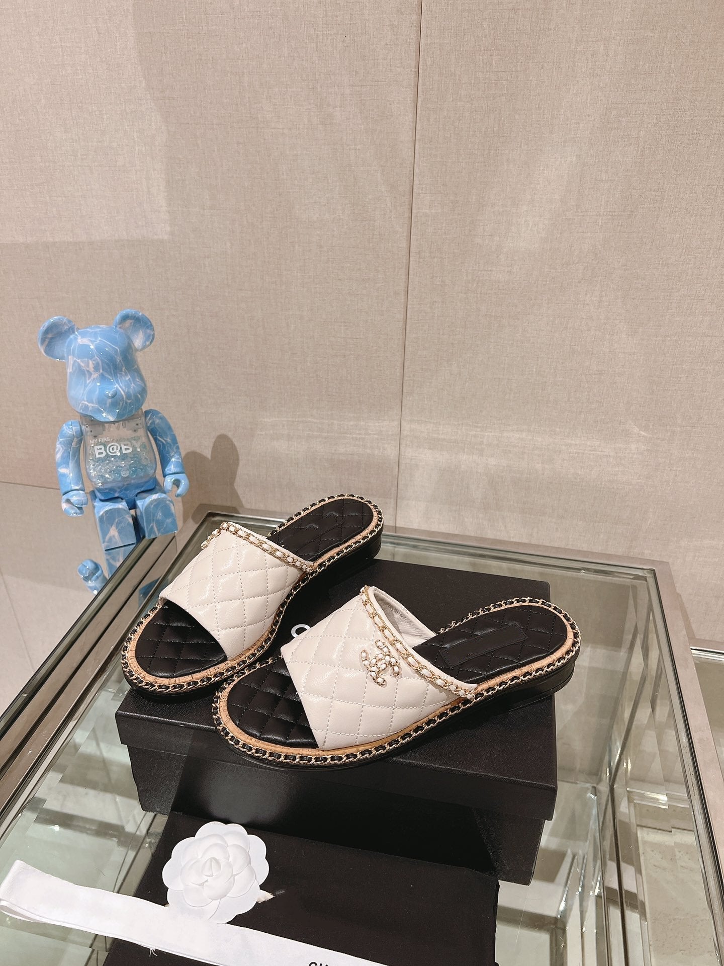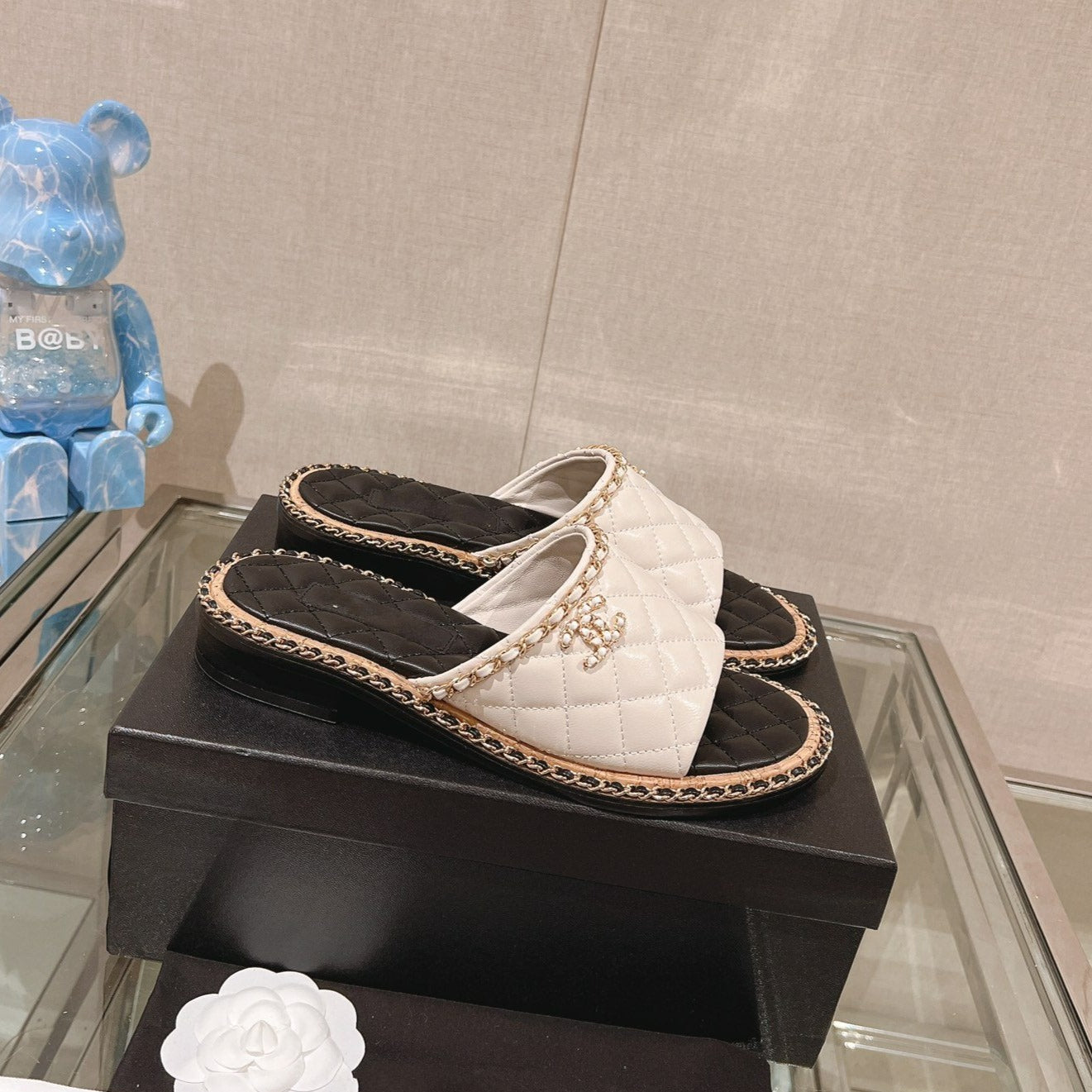 mule sandal 30 white black quilted lambskin