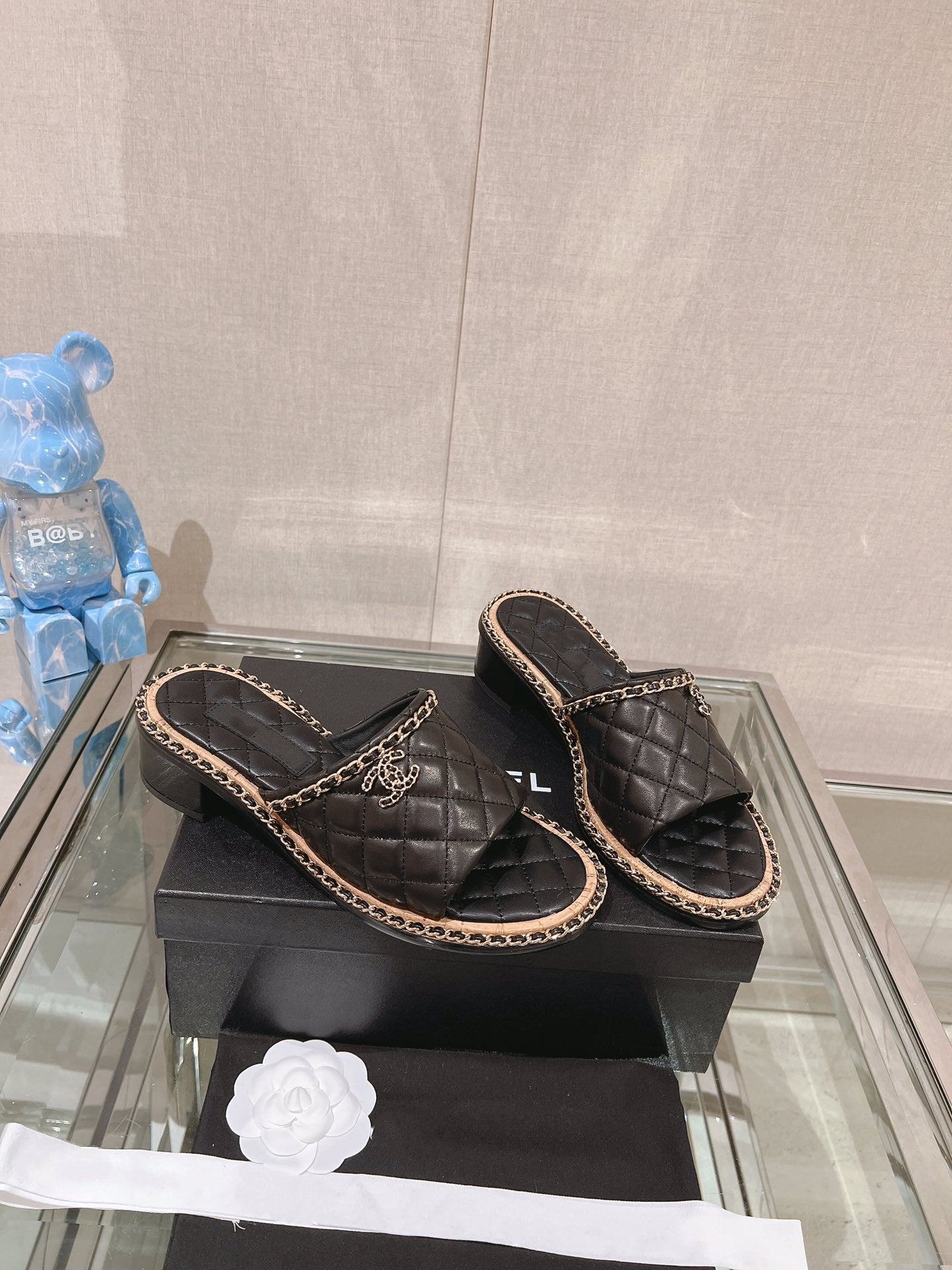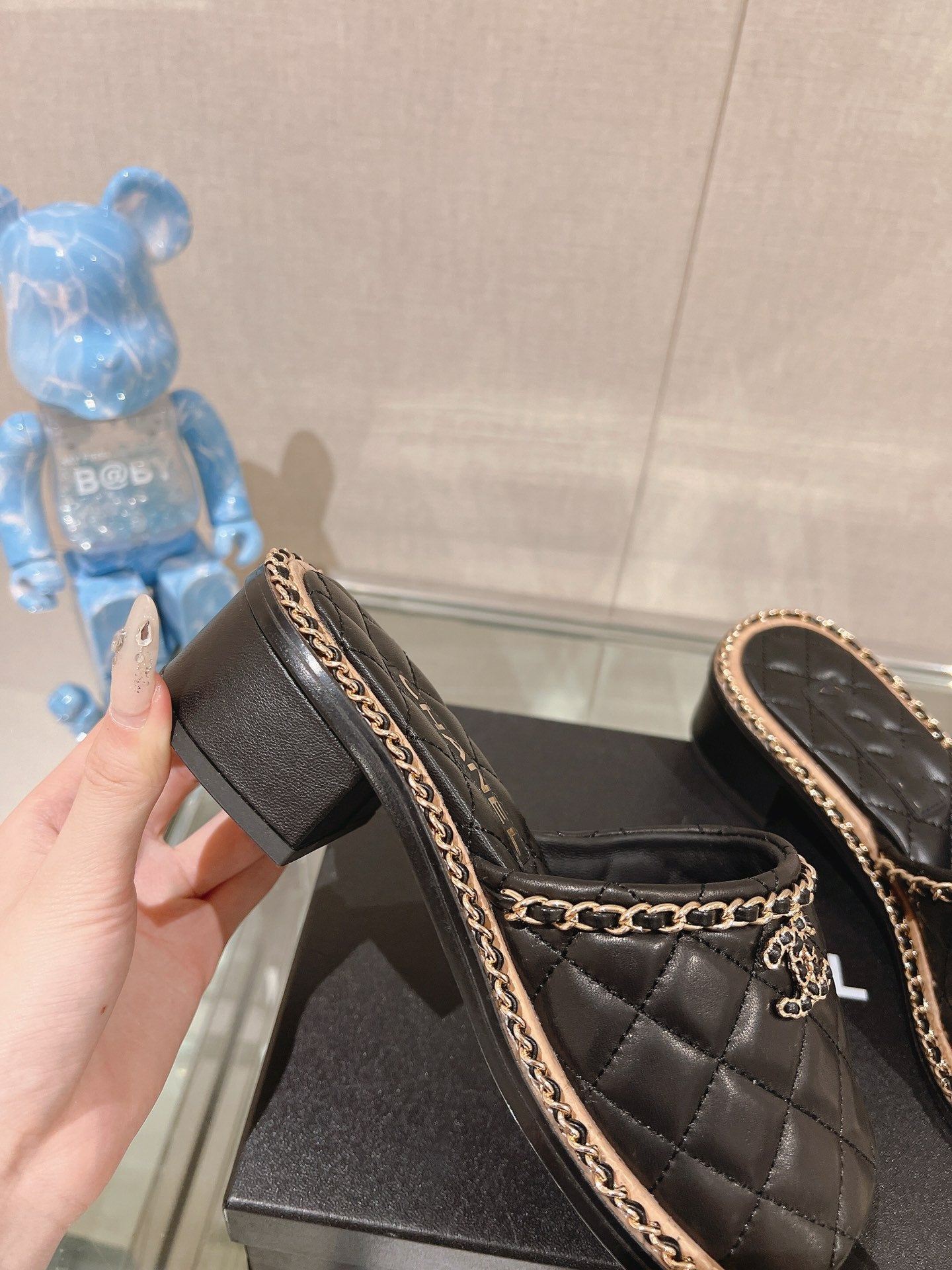 mule sandal 50 black quilted lambskin