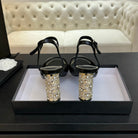 T-STRAP PEARL HEEL 85 MM SANDALS IN BLACK LAMBSKIN
