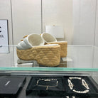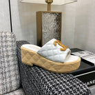 THICK SOLE WEDGE SLIPPERS IN WHITE LAMBSKIN AND BEIGE RUBBER