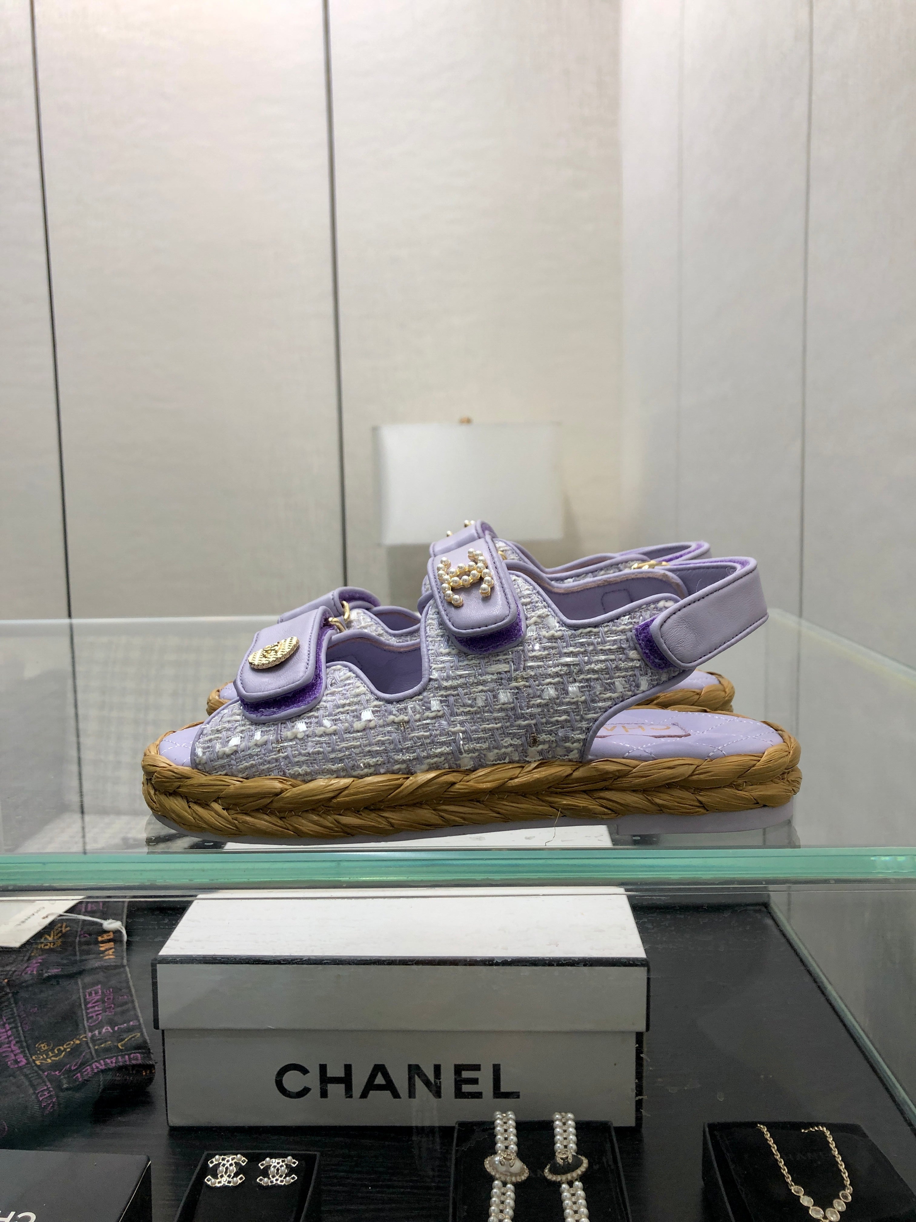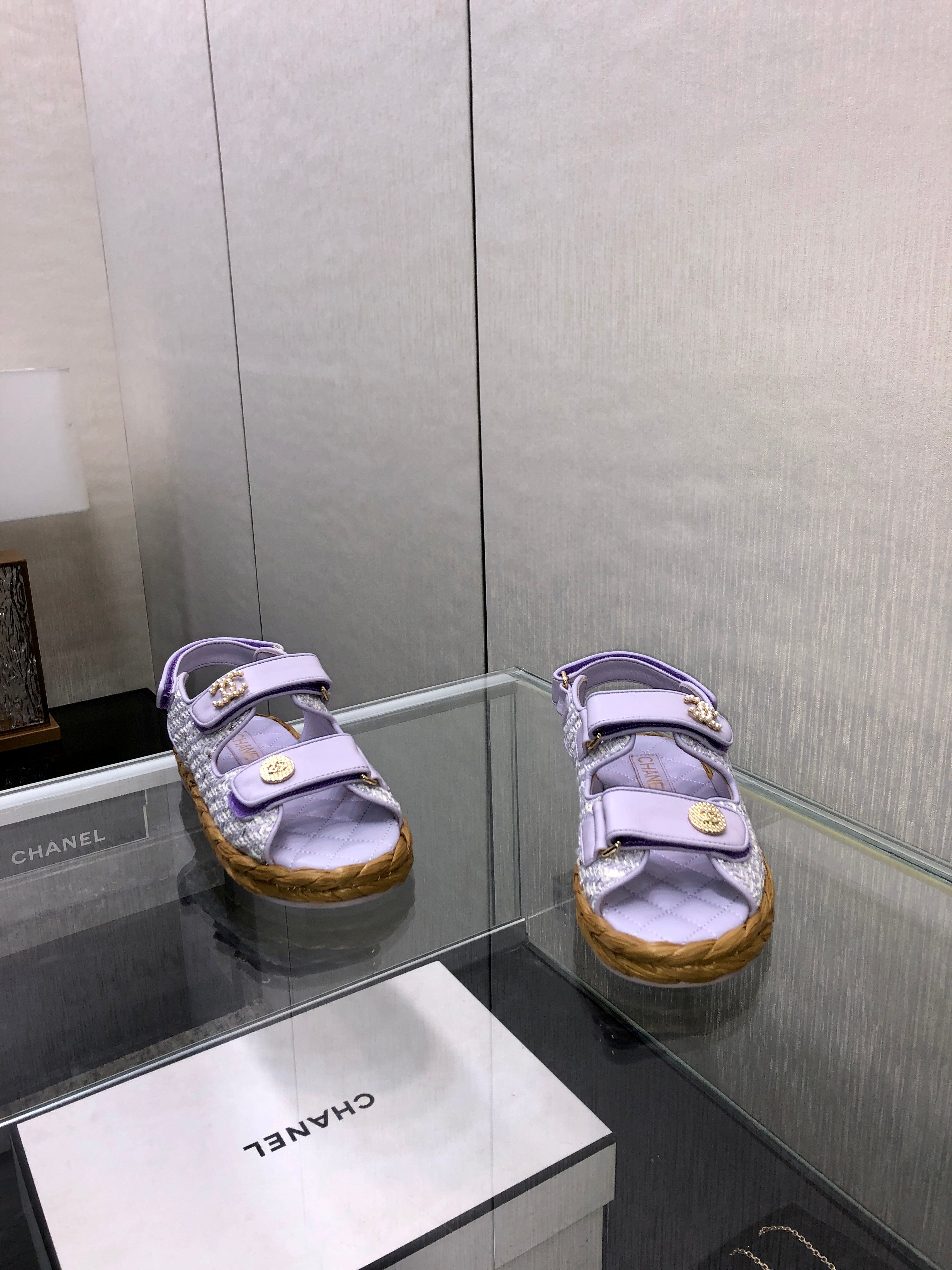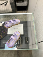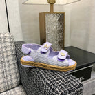 VELCRO SANDALS IN PALE PURPLE LAMBSKIN AND TWEED FABRIC