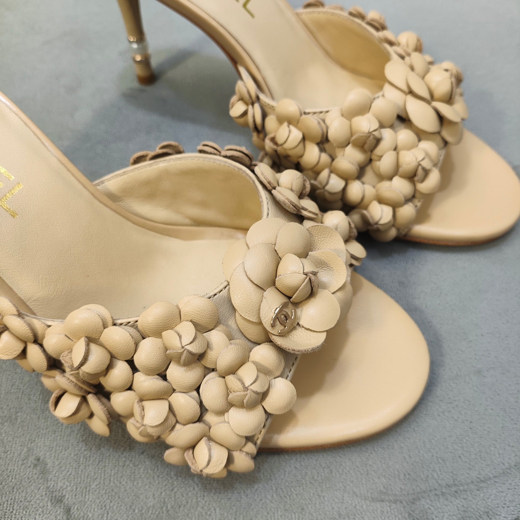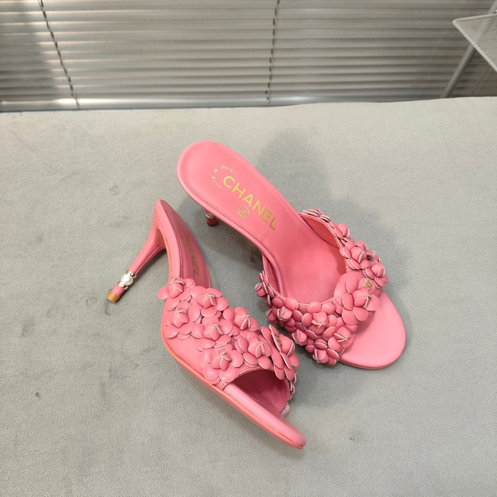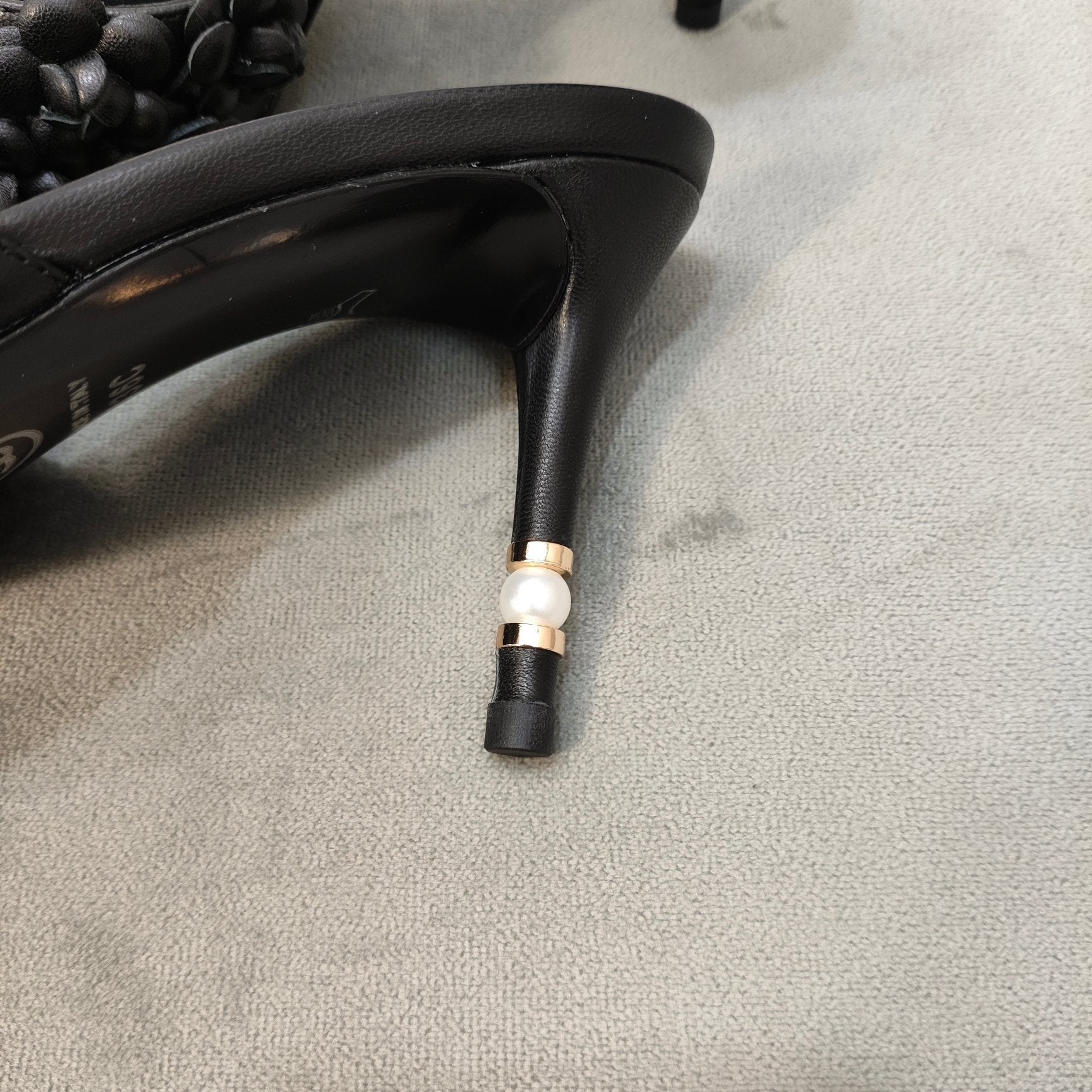 CC THONG SANDAL IN BLACK LAMBSKIN WITH PEARL FLOWER