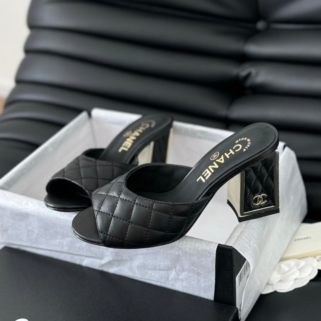 CC HIGH WEDGE SANDALS IN BLACK LAMBSKIN