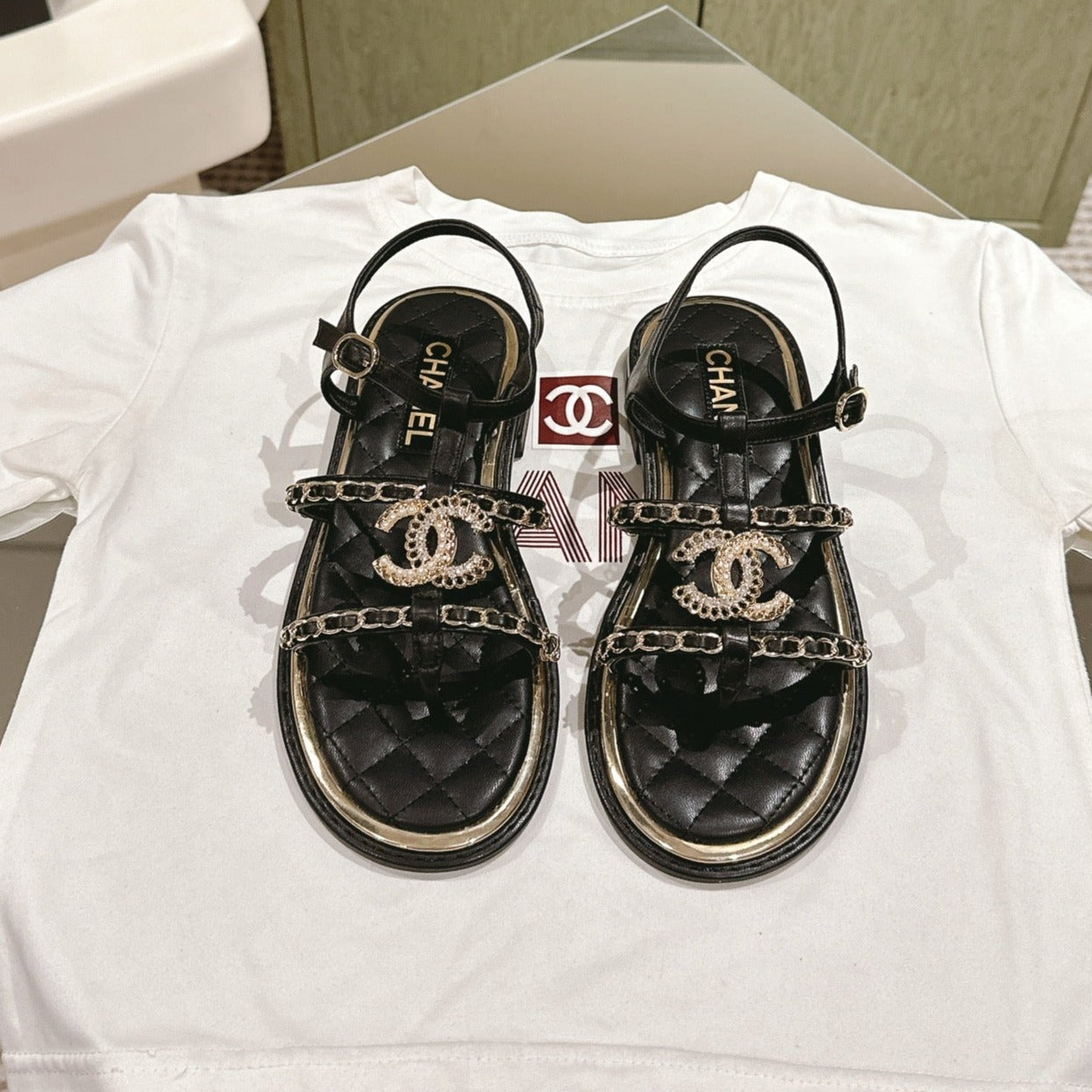 CC CAMELLIA SANDAL IN BLACK SUEDE AND CALFSKIN WITH FLOWER