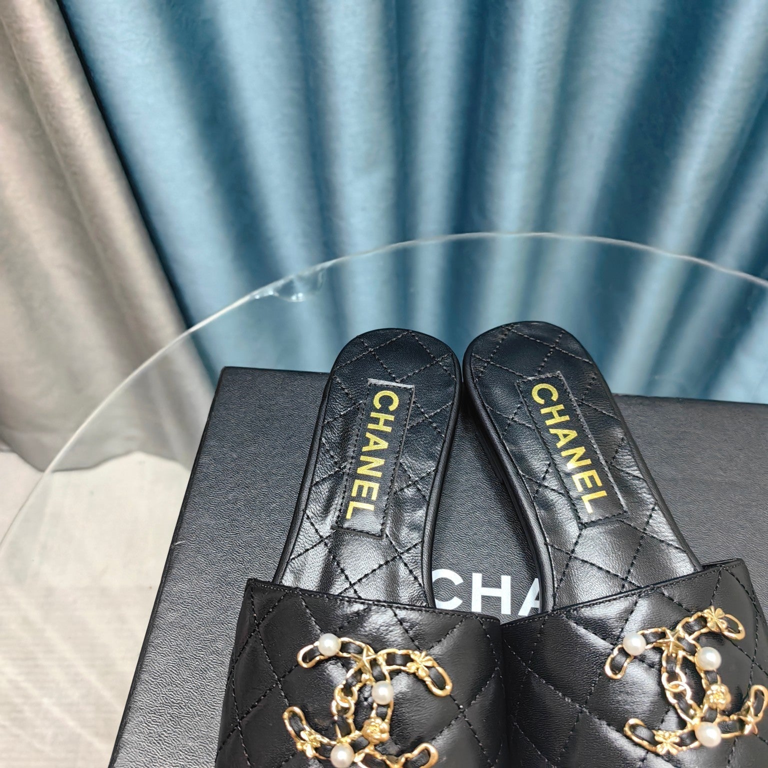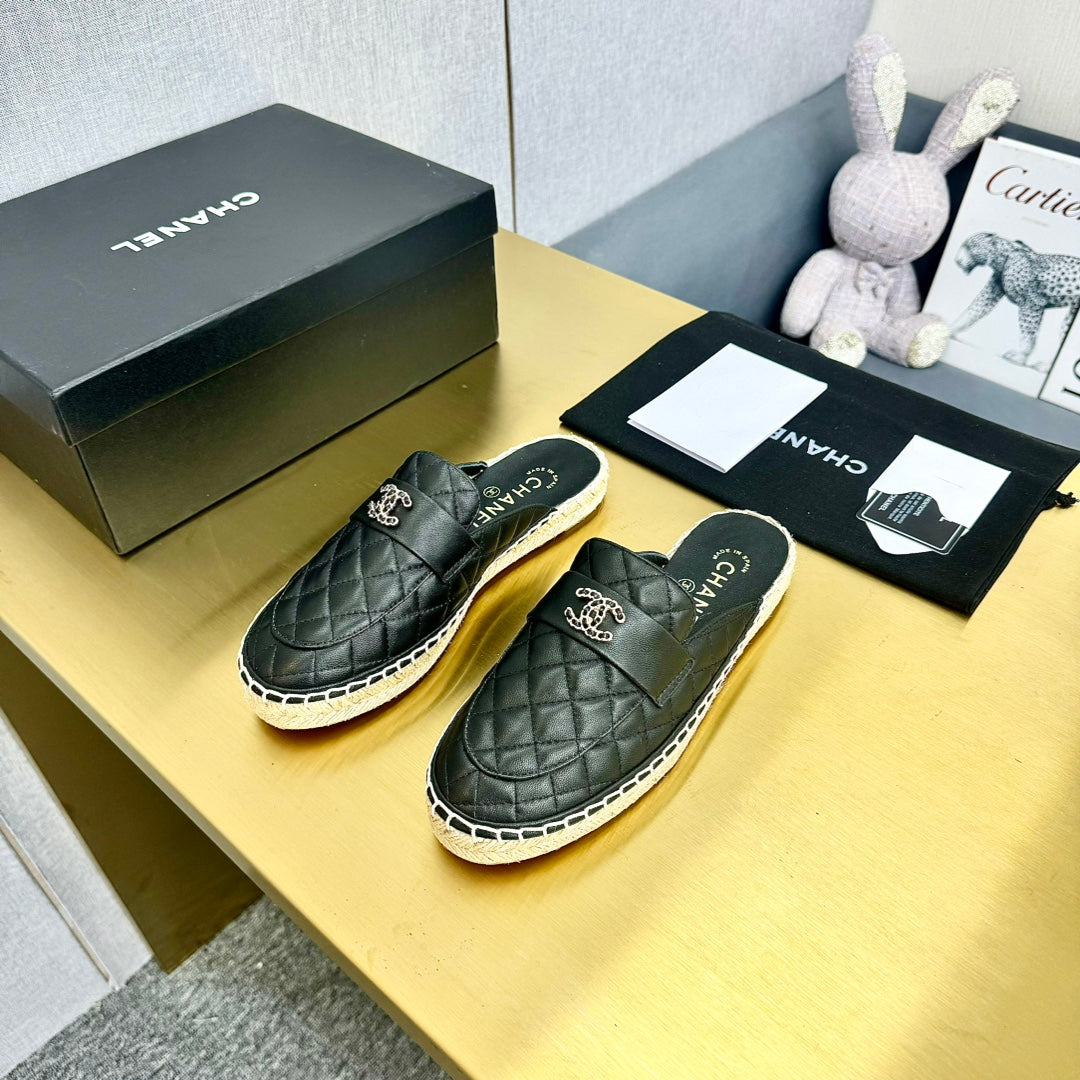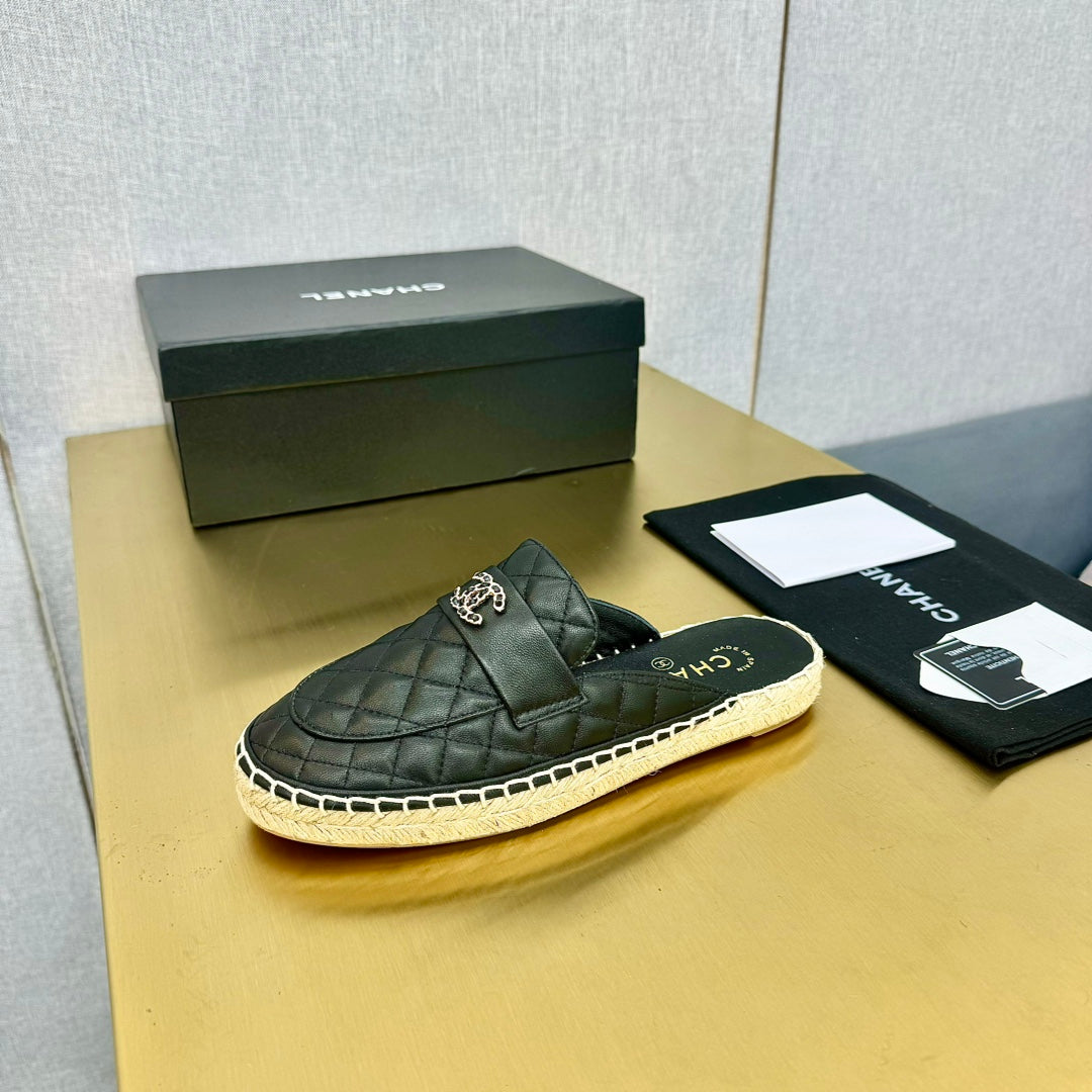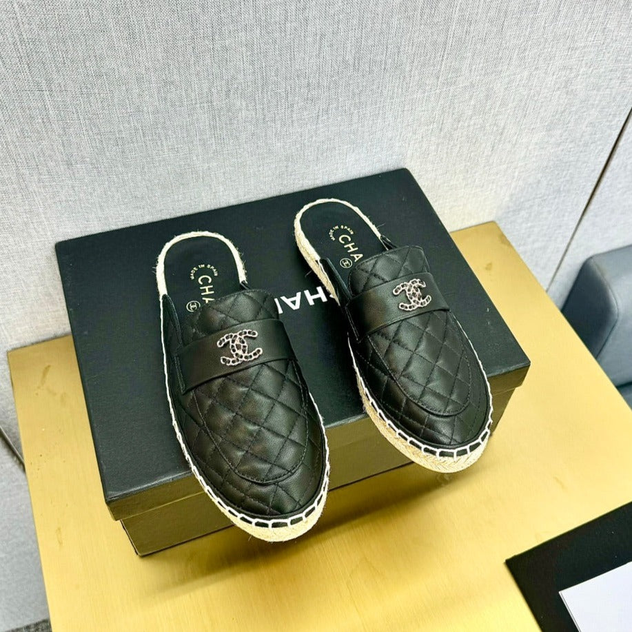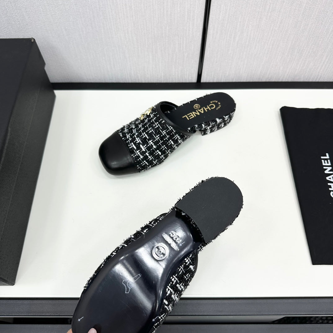 CC FLAT MULE IN BLACK WOOL TWEED AND CALFSKIN GOLD HARDWARE