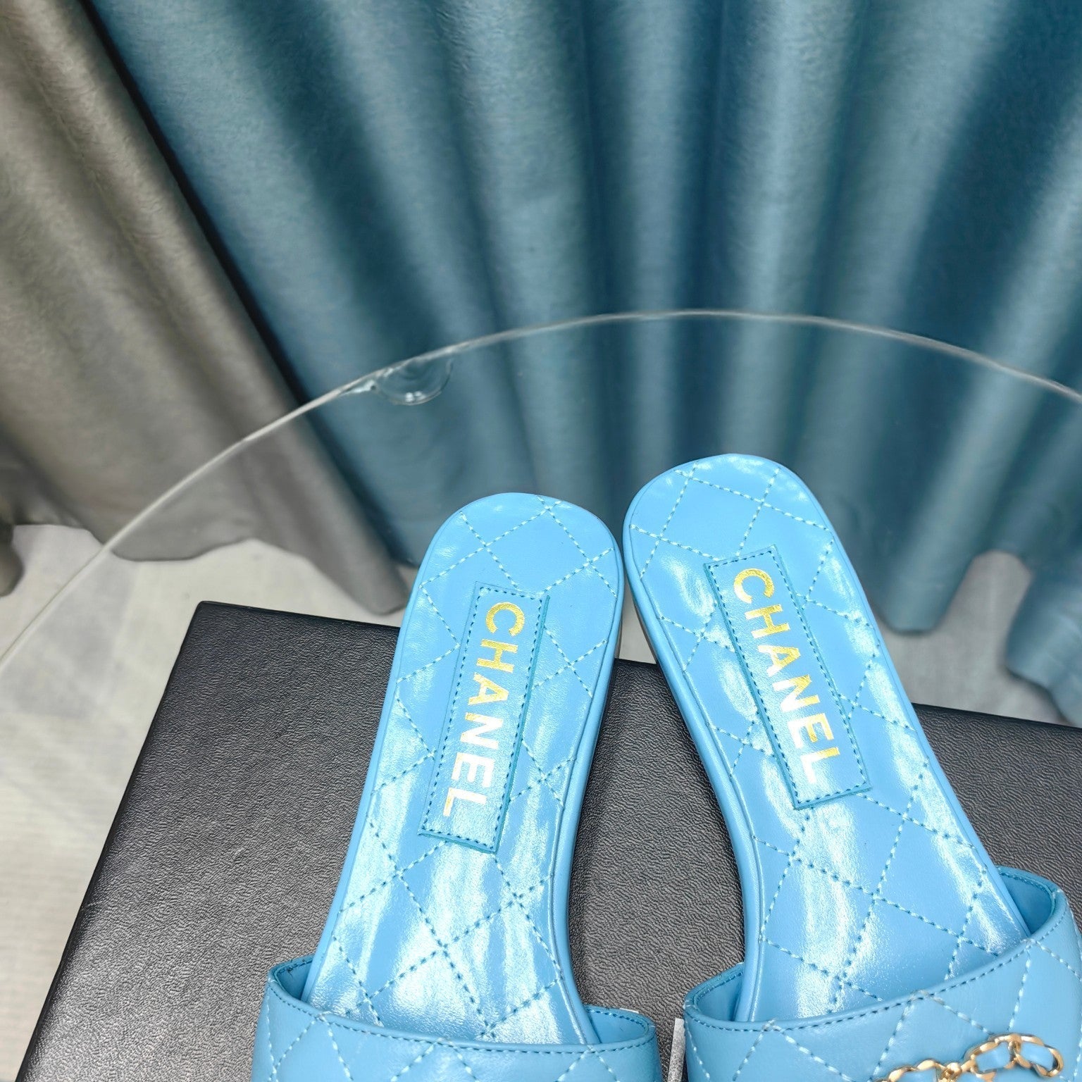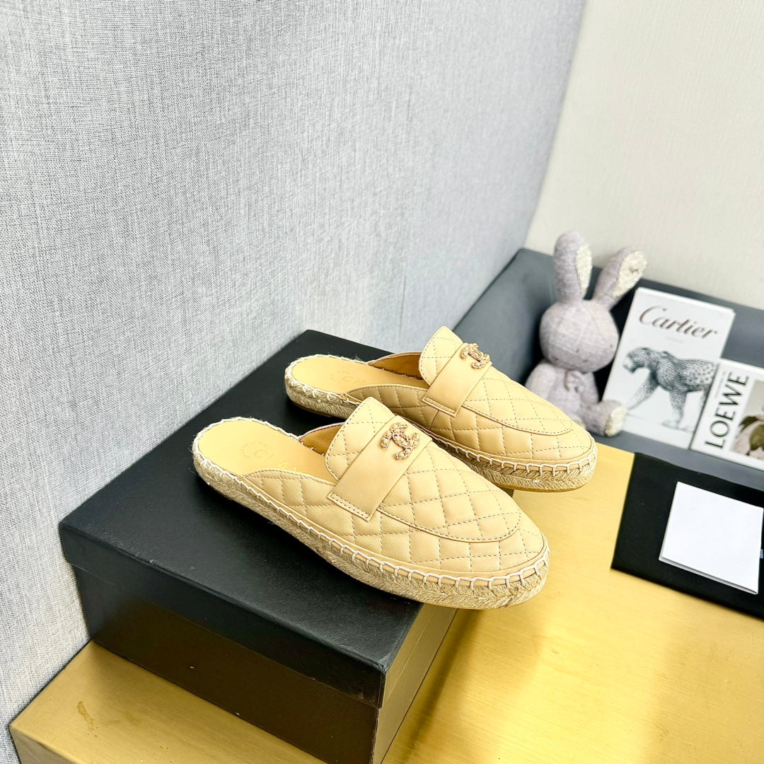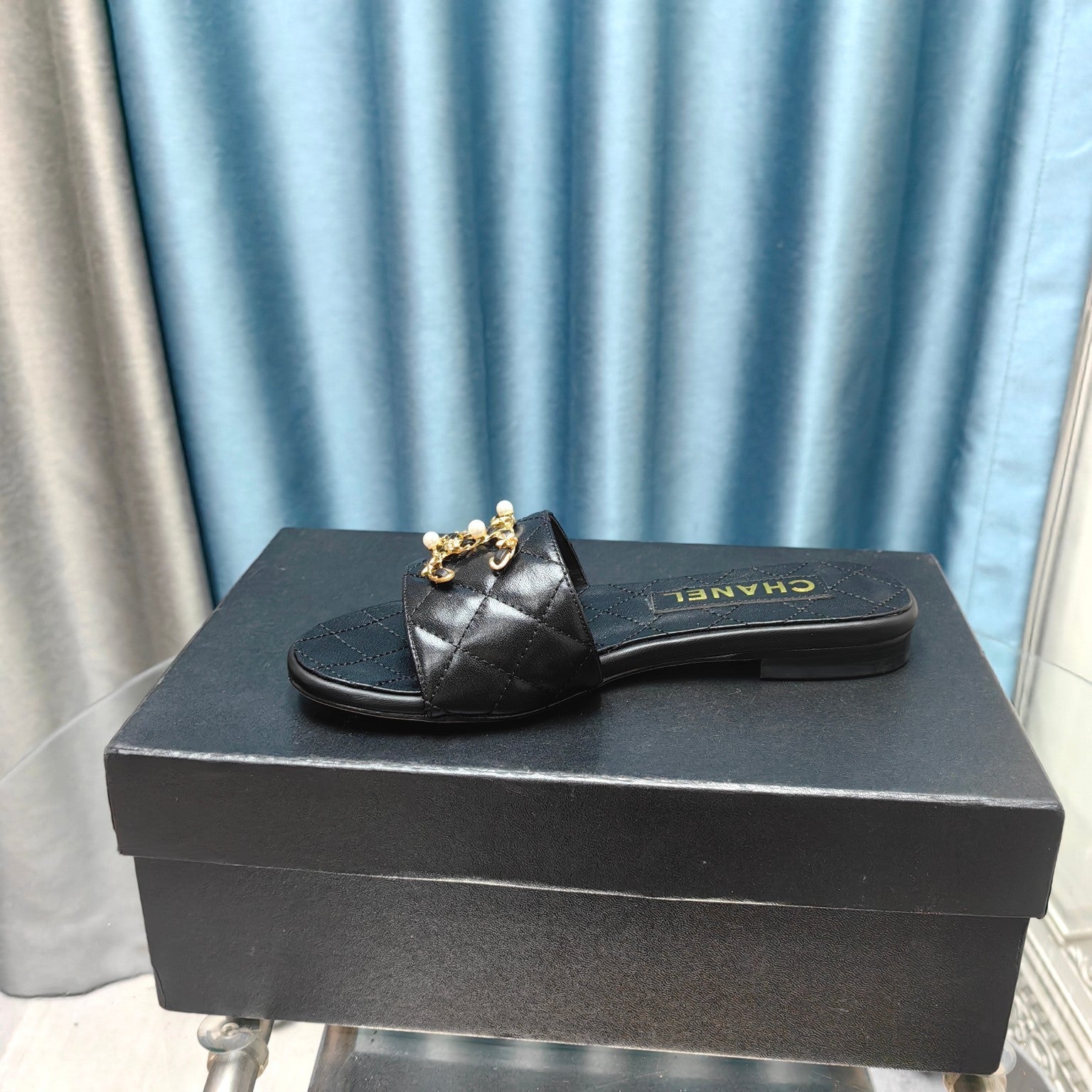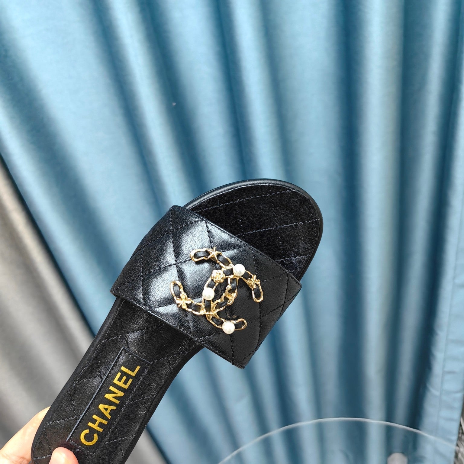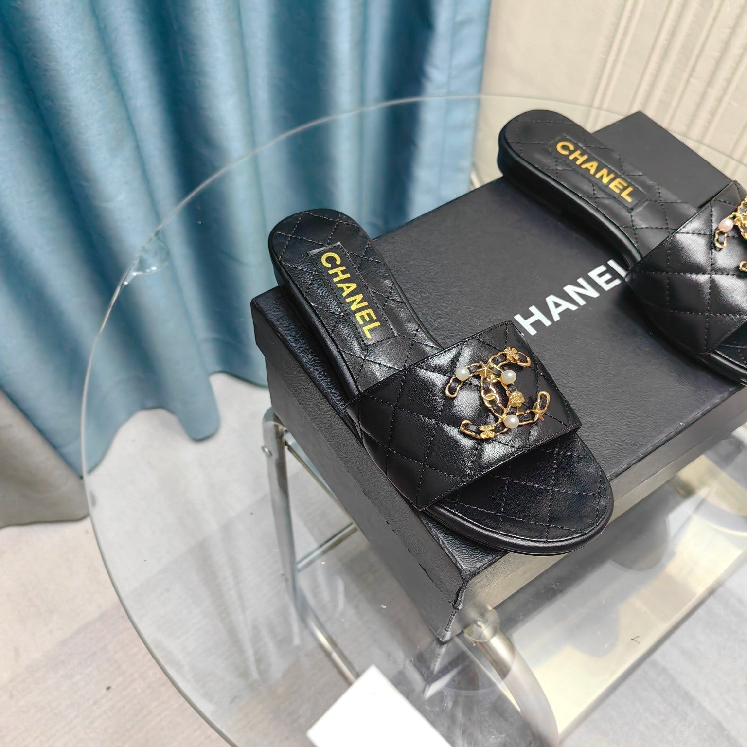 CC FLAT MULE IN BLACK WOOL TWEED AND CALFSKIN GOLD HARDWARE