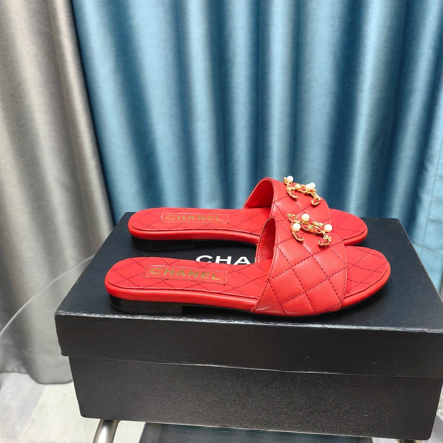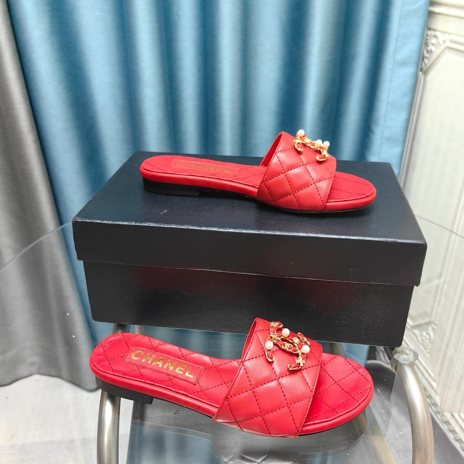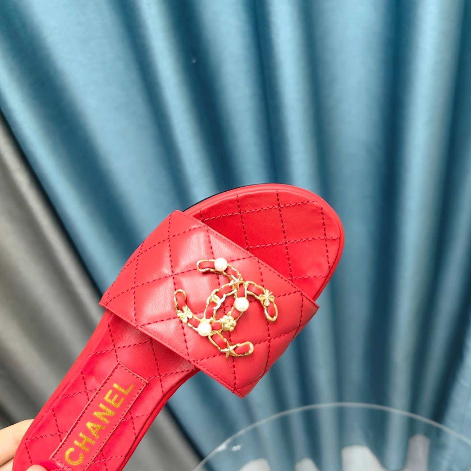 CC DAD SANDAL MULE IN RED ORANGE LAMB FUR
