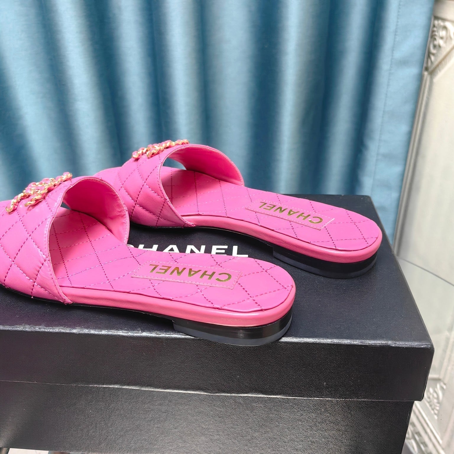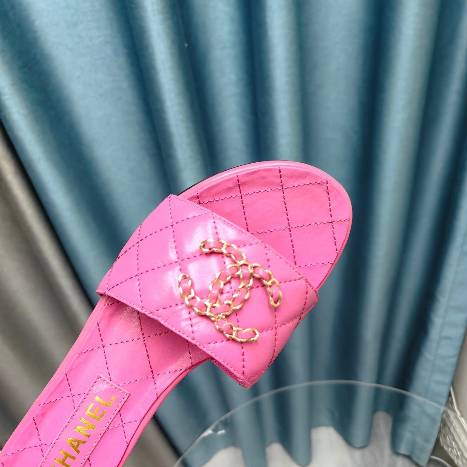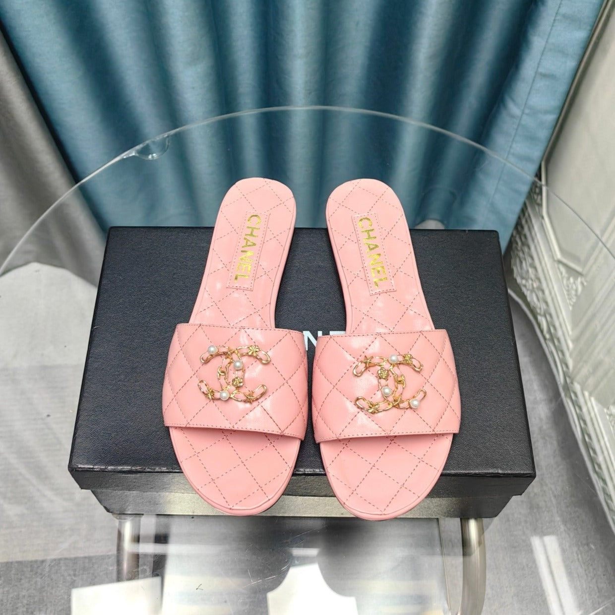 CC MULE IN LIGHT PINK SMOOTH FLEECE WITH GOLD HARDWARE