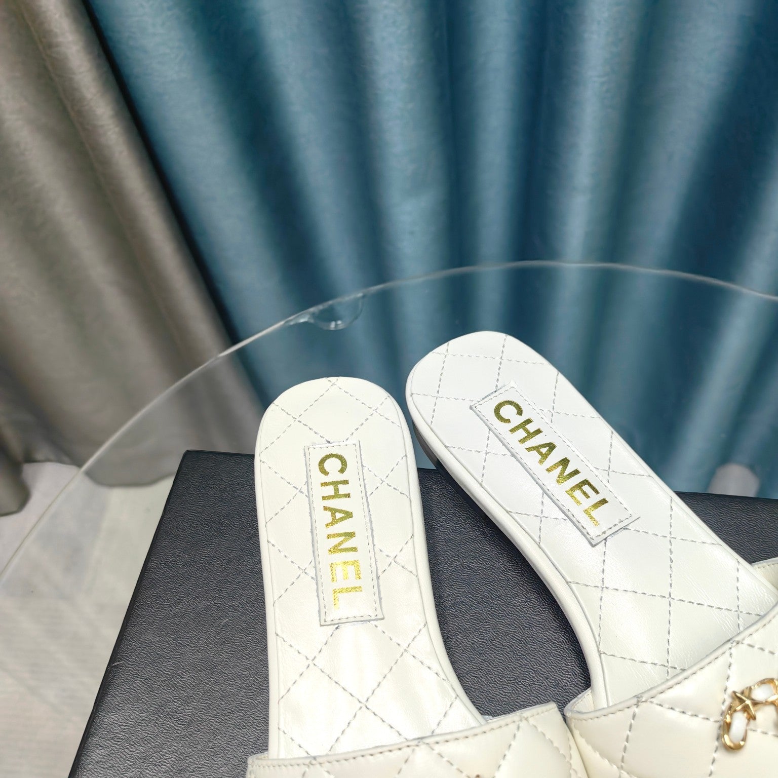 CC FLAT MULE IN WHITE MIX BLACK WOOL TWEED AND CALFSKIN