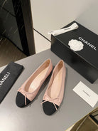 ballet flat blush calfskin black grosgrain