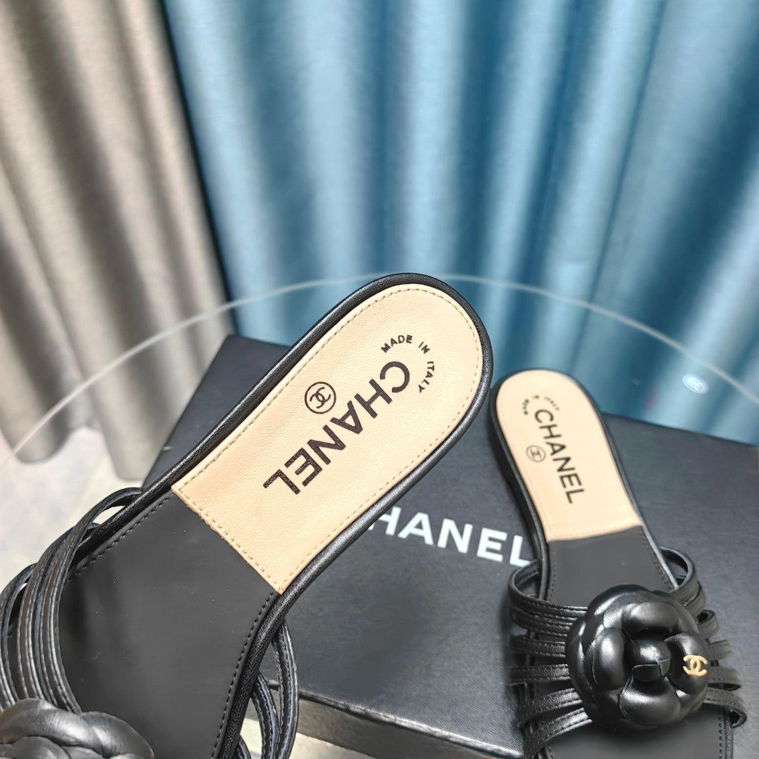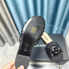 Camellia Slide Slippers Black Lambskin