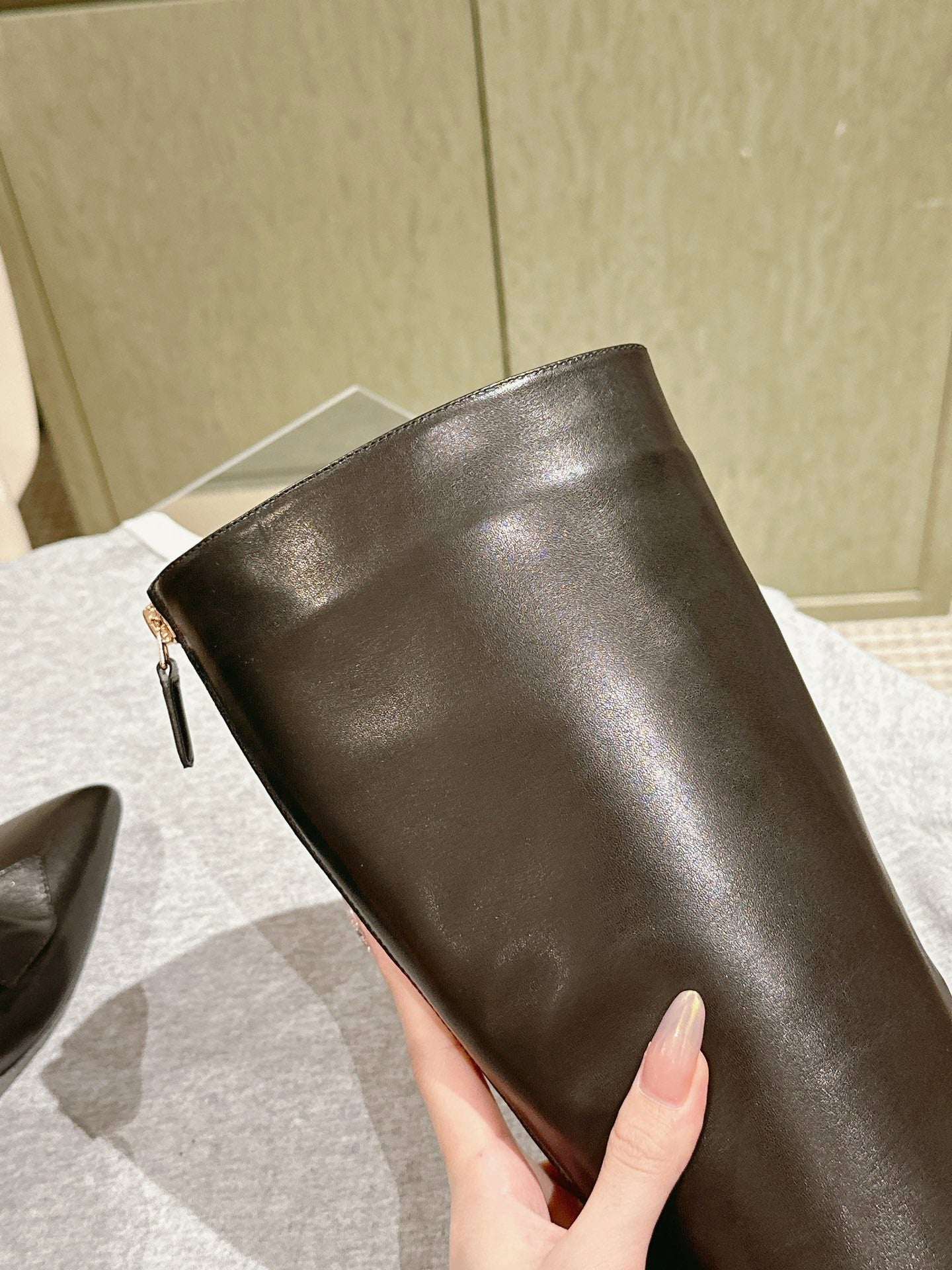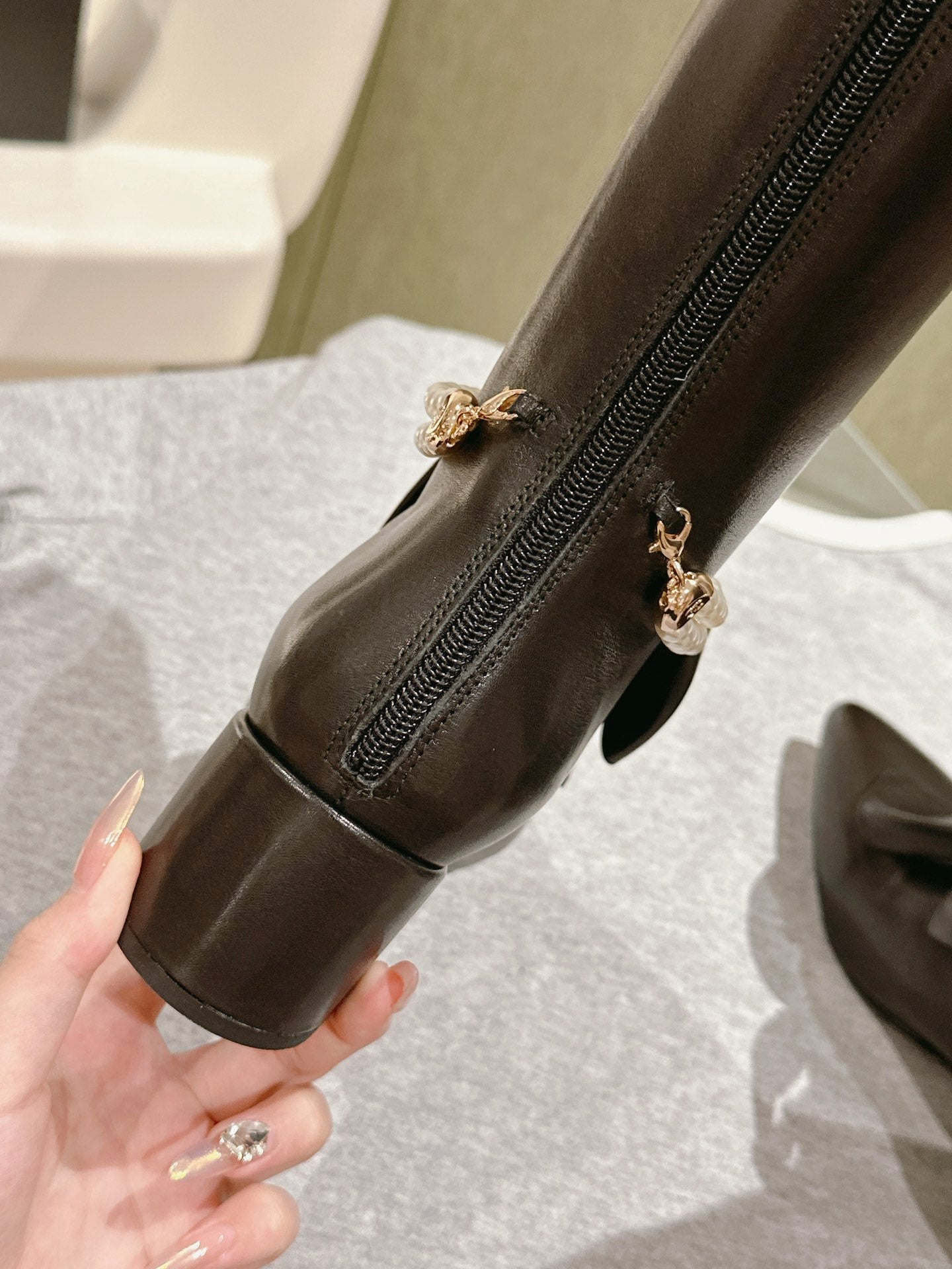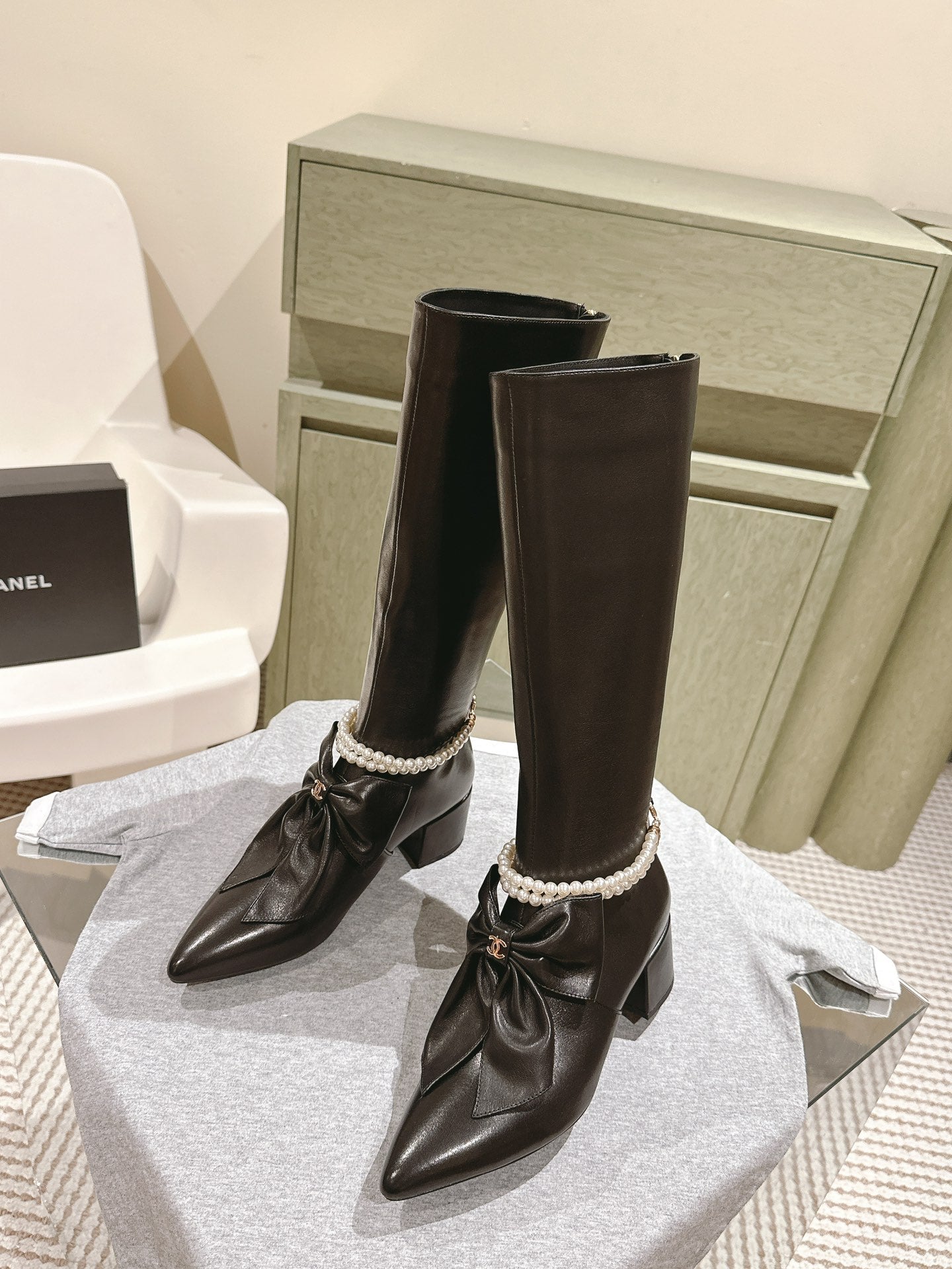 CC 24A Pearl Bow Knee-High Boots 65mm Black Sheepskin 447462