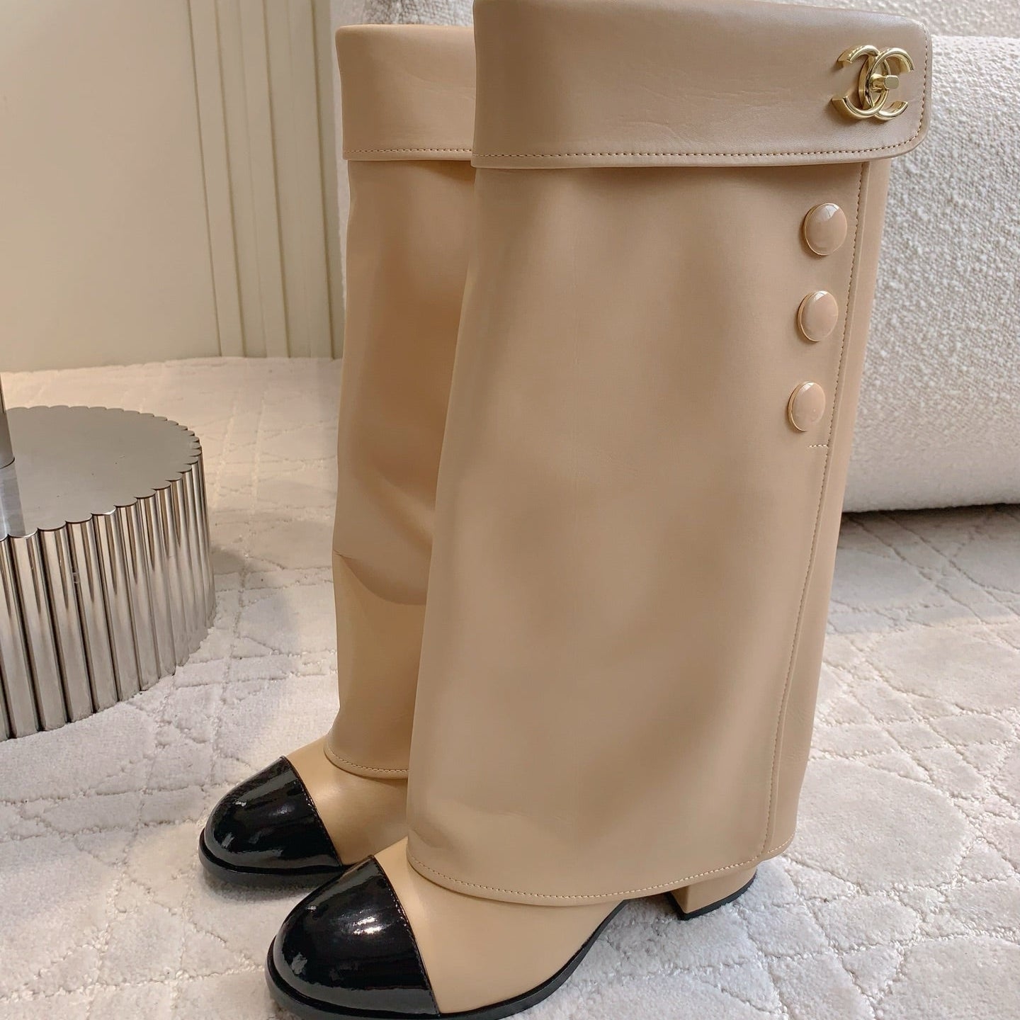 CC 25 Buttoned Boot Beige Calfskin 516648
