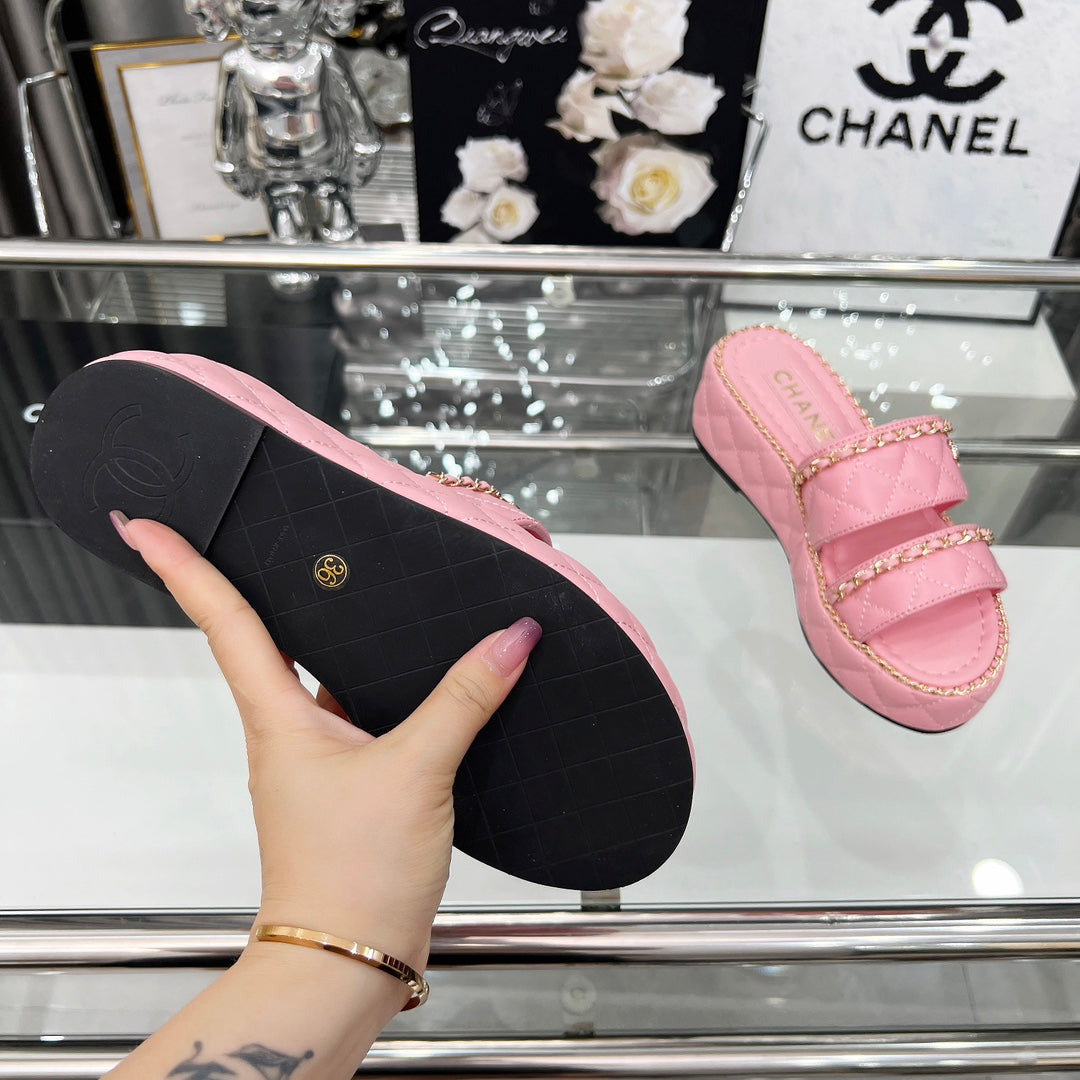 CC 25 Slide Leather Chain 6cm Pink Lambskin 338657