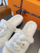 CC 25C Logo Slippers 50mm White Shearling Wood Sheepskin 423695