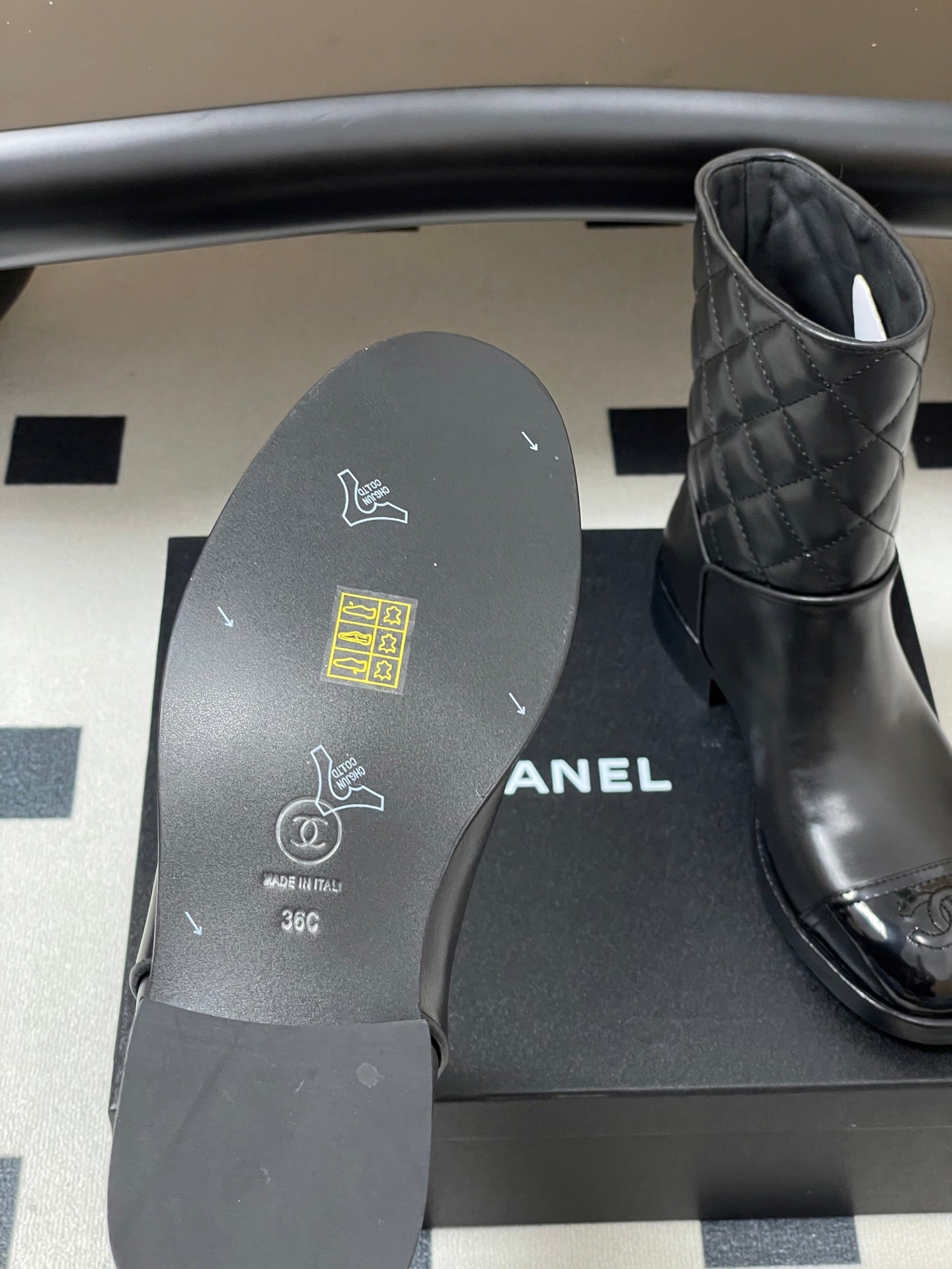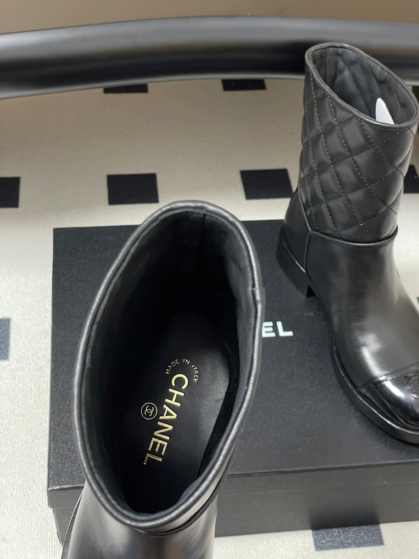CC 25FW Double C Buckle Short Boot 25mm Black Sheepskin 423144