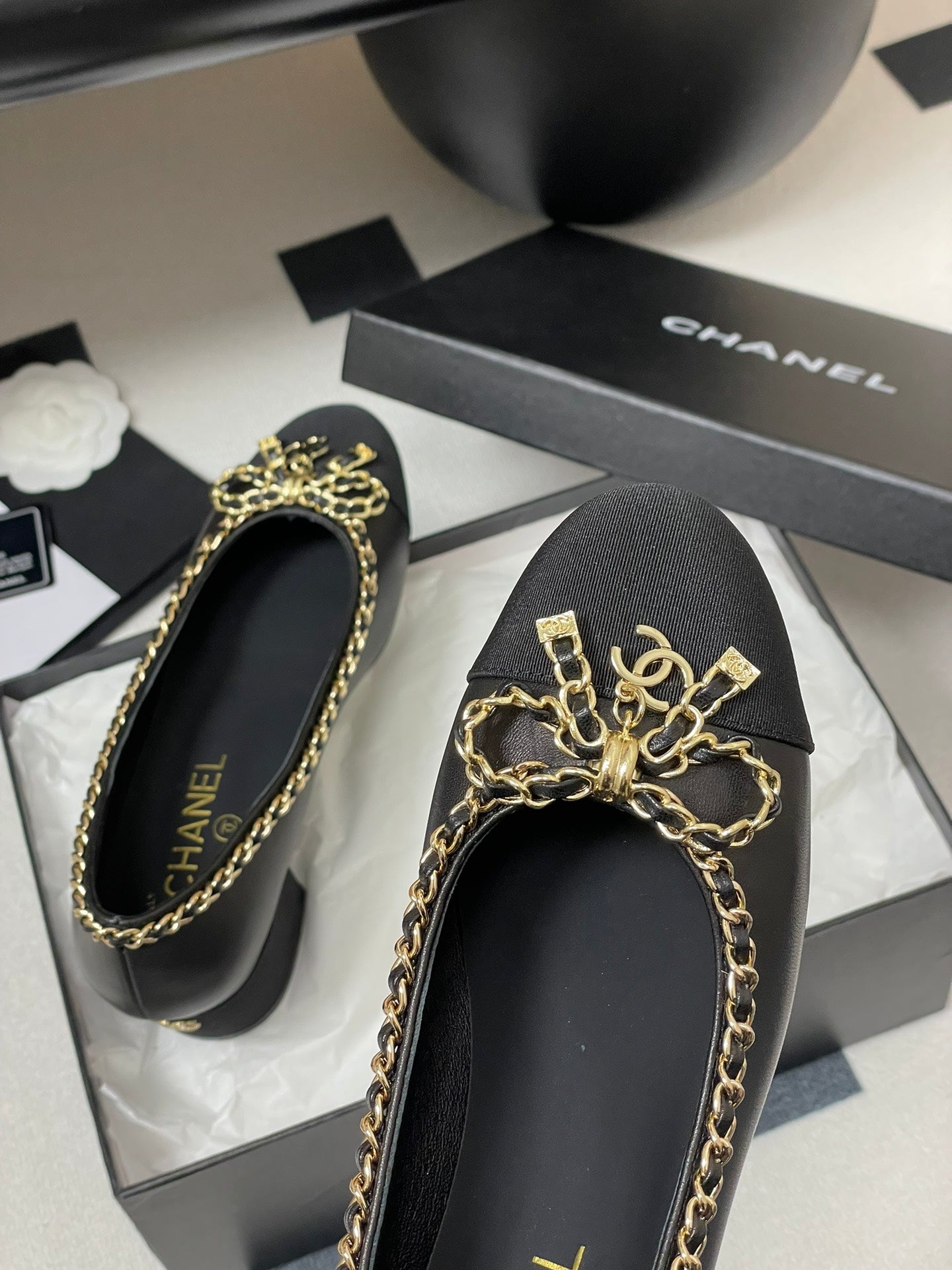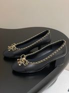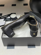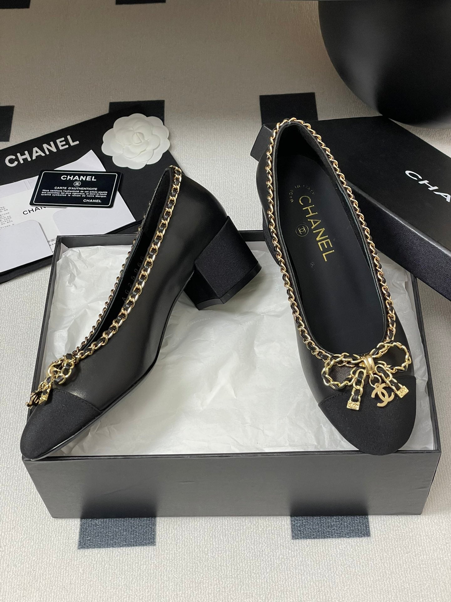 CC 25S 60mm Chain Bow Single Pumps Black Sheepskin Grosgrain 247664