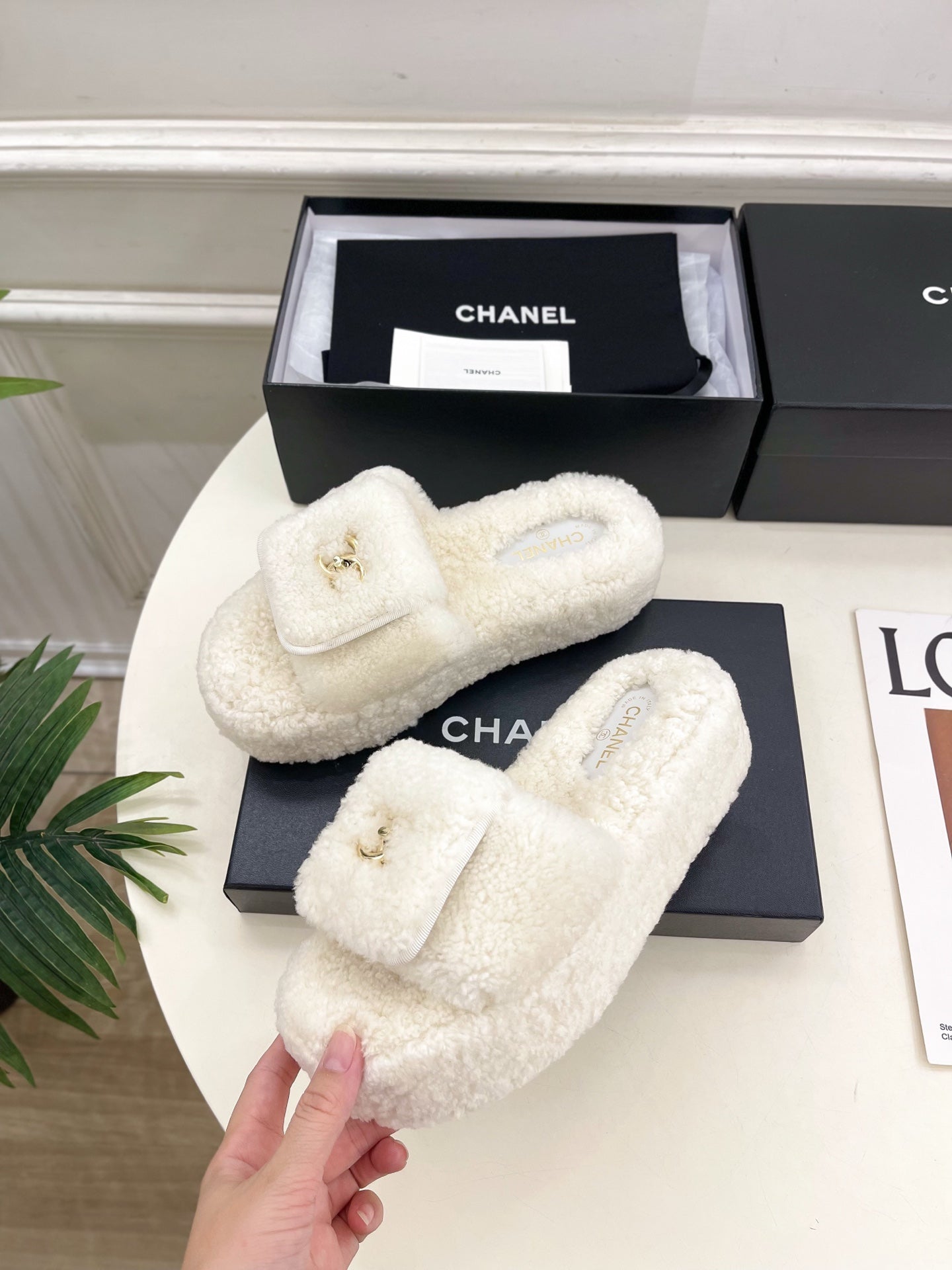 CC 25s Logo Slippers 50mm White Wool GHW 435262