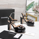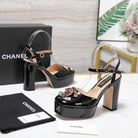 CC 25s Multicolor Stones Buckle Sandals 110mm Black Patent Leather & Sheepskin 425827