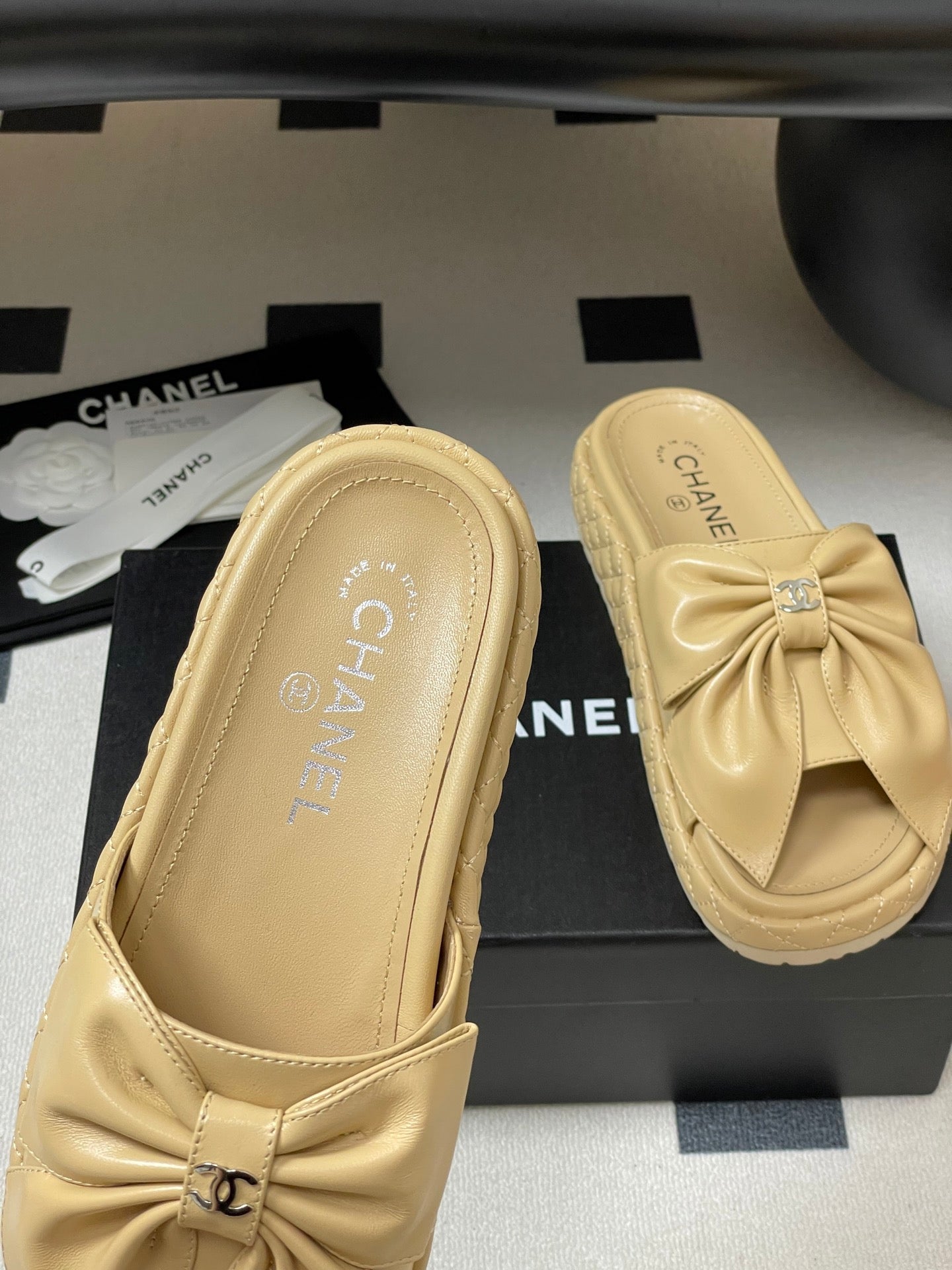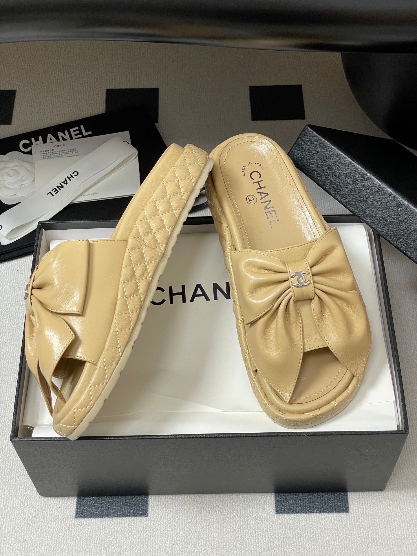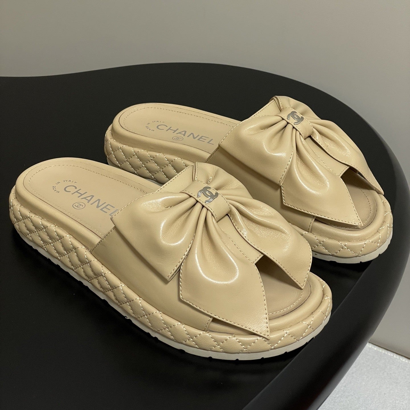 CC 25SS Big Bow Thick-soled Mule Sandals Beige Lambskin 319706