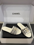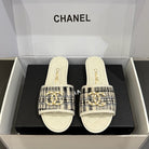 CC 25ss Chain Flat Slippers Black WhiteCowhide & Sheepskin 417563