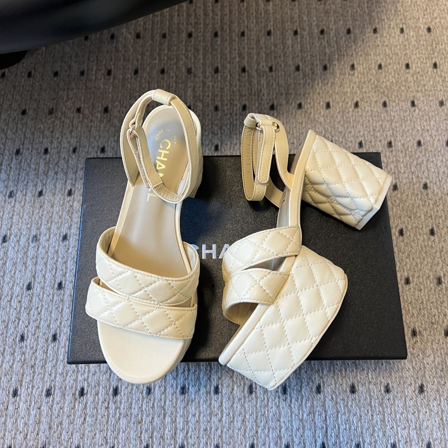 CC 25SS Platform Sandals 5.5cm Beige Sheepskin 319627