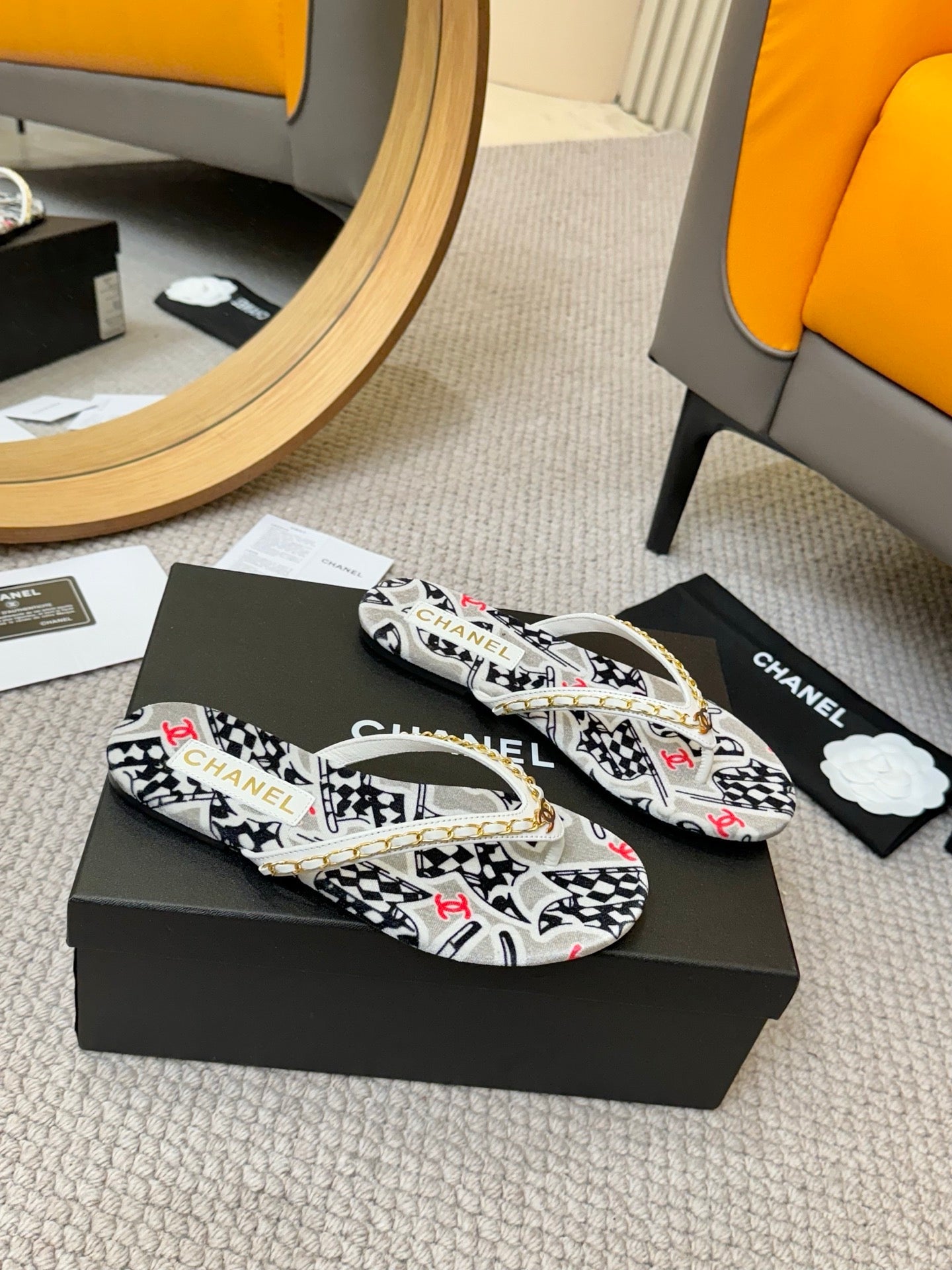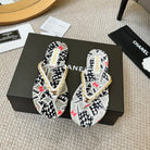 CC Chain Strap Thong Slippers Multicolor Cloth Sheepskin Velvet 305867