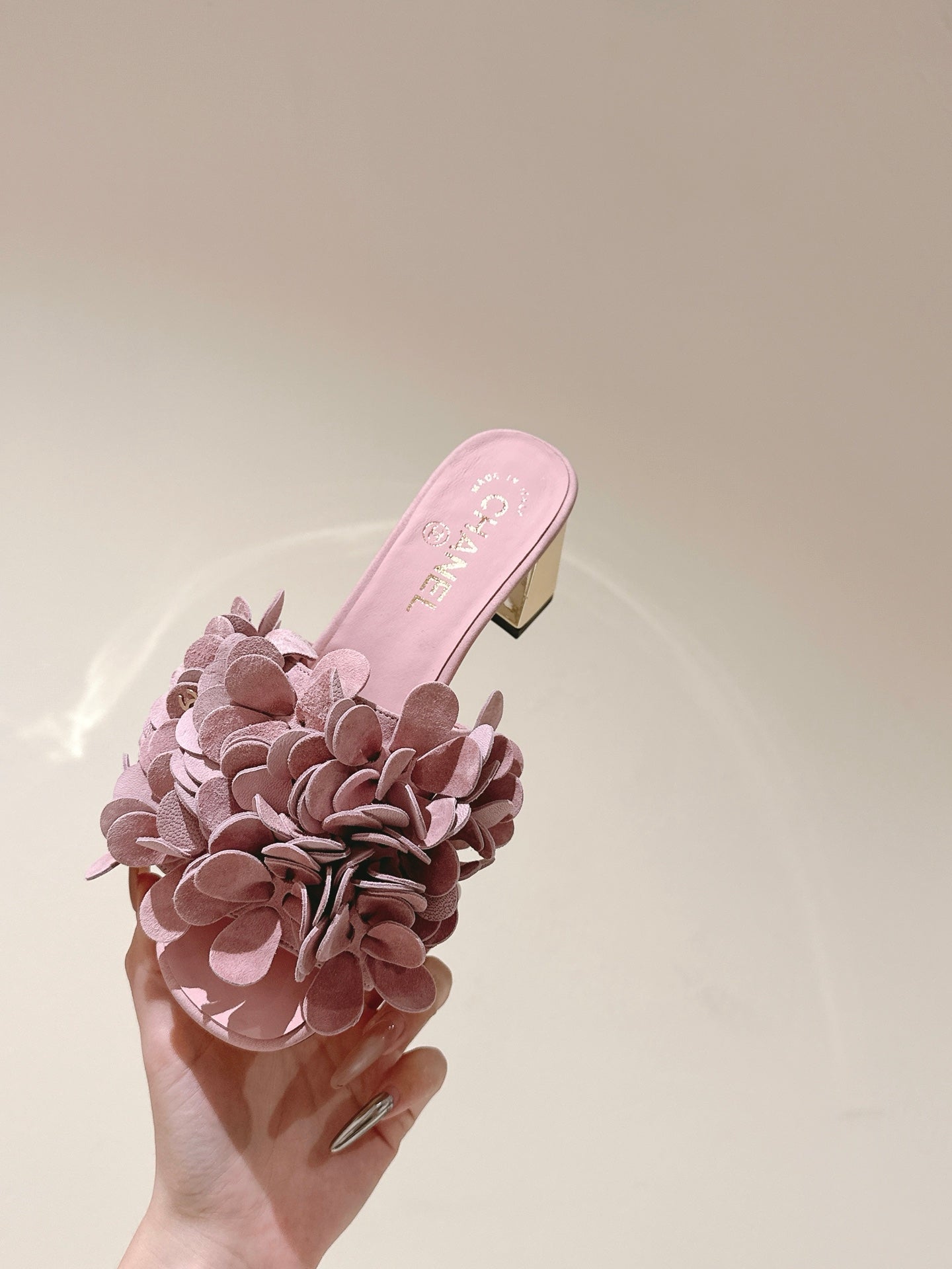 CC Floral Slide Sandals 55mm PInk Suede Cowhide 454285