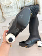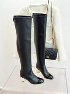 Chanel 25 Double C Giant Pearl Heel Long Boot Black White Sheepskin 465413