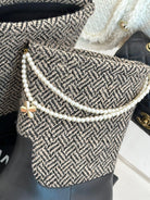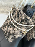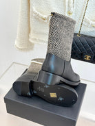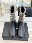 Chanel 25 Four-Leaf Clover Pearls Double C Boots Black Grey Woven Sheepskin 465404