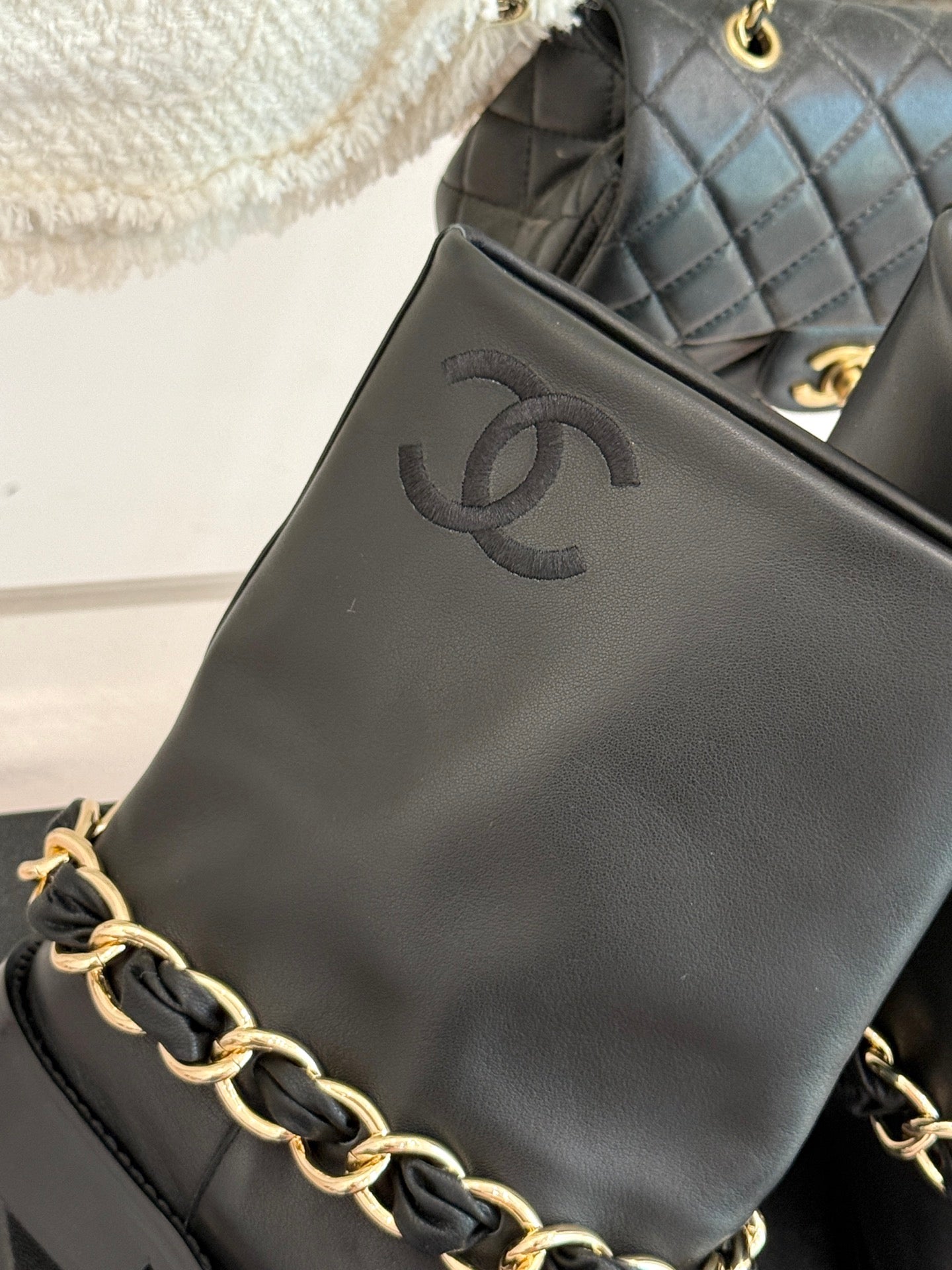 Chanel 25 Large Chain Flat-solved Boot Black Lambskin 465422