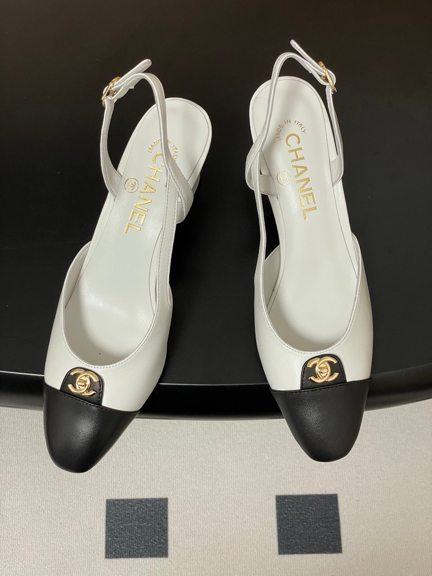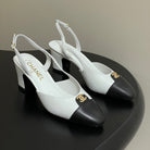 Chanel 25 Slingback 50mm White Black Lambskin 473217